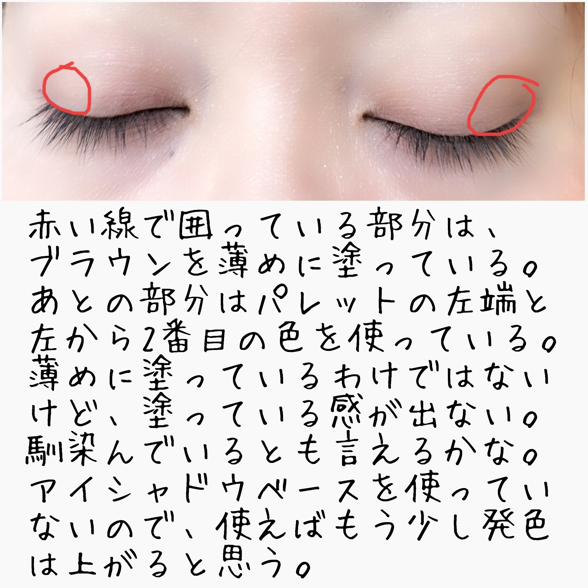 初心者でも扱いやすい配色と自然に大きな目もと印象になれるのがよかった。 盛り耐性ないのにめっちゃ盛れるという。 透け感の強いブラウンで構成されてるからまぶたがクリアなまま奥行きだせるの天才。