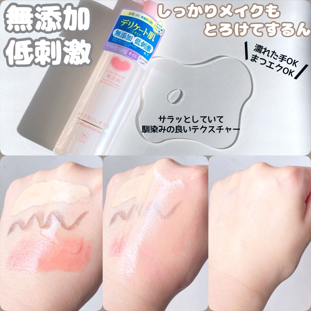 カウブランド無添加さまからいただきました無添加・低刺激処方でデリケートなお肌にも使えちゃう、カウブランド無添加さんのメイク落としオイルを使ってみました♡比較的さらりとしたテクスチャーのオイルはしゃばしゃばしすぎていない程よいクッション感で、し...