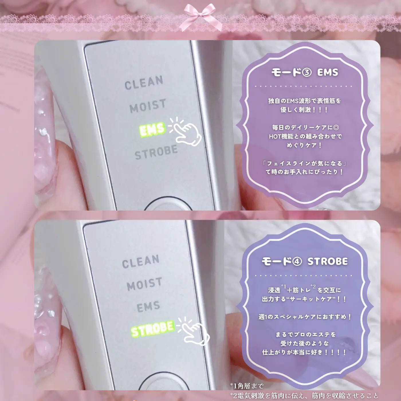 | 3タイプのモードとパワーでお肌やお顔の状態によって使い分けられるのも嬉しい👀💗 | 詳細を見る | ||