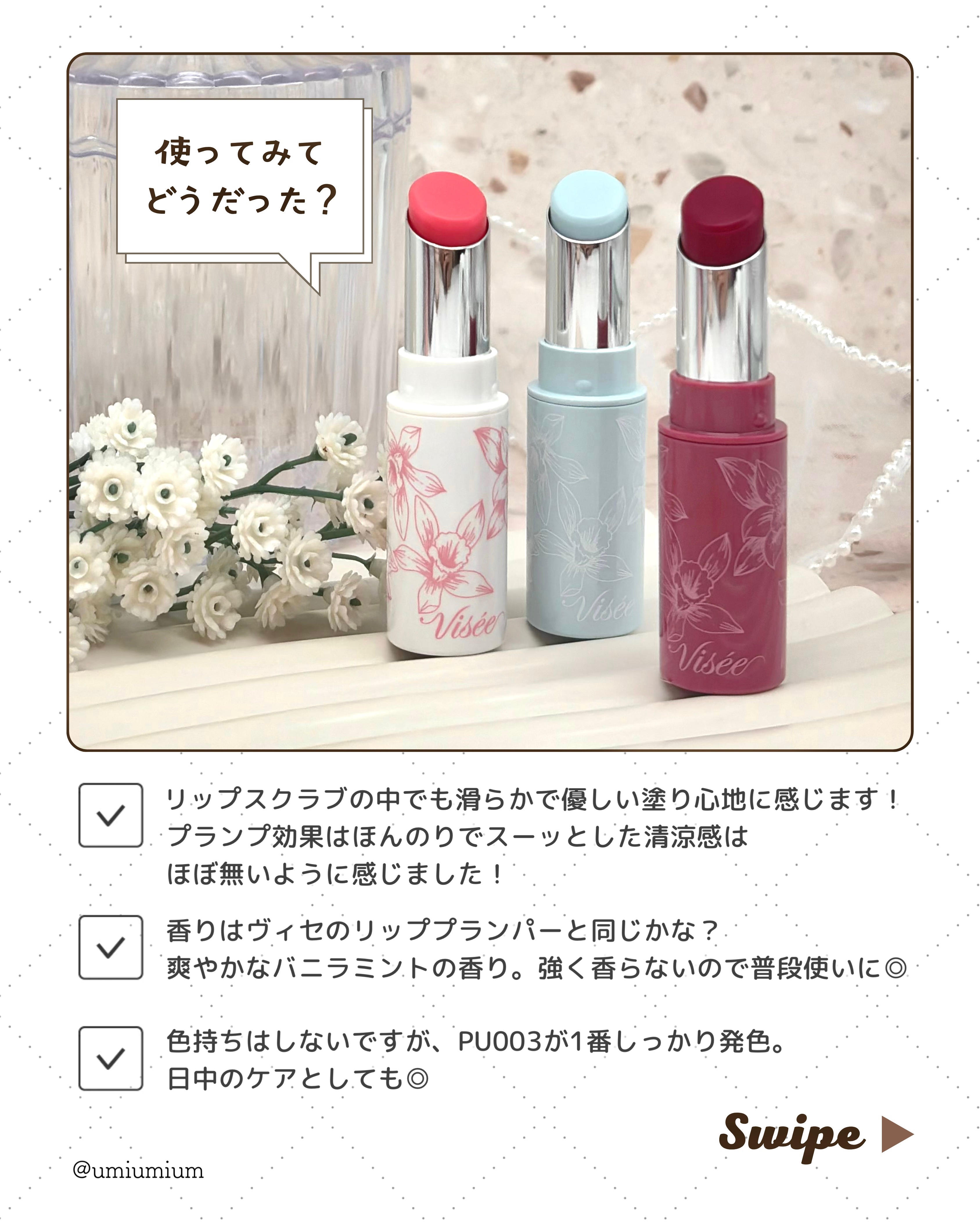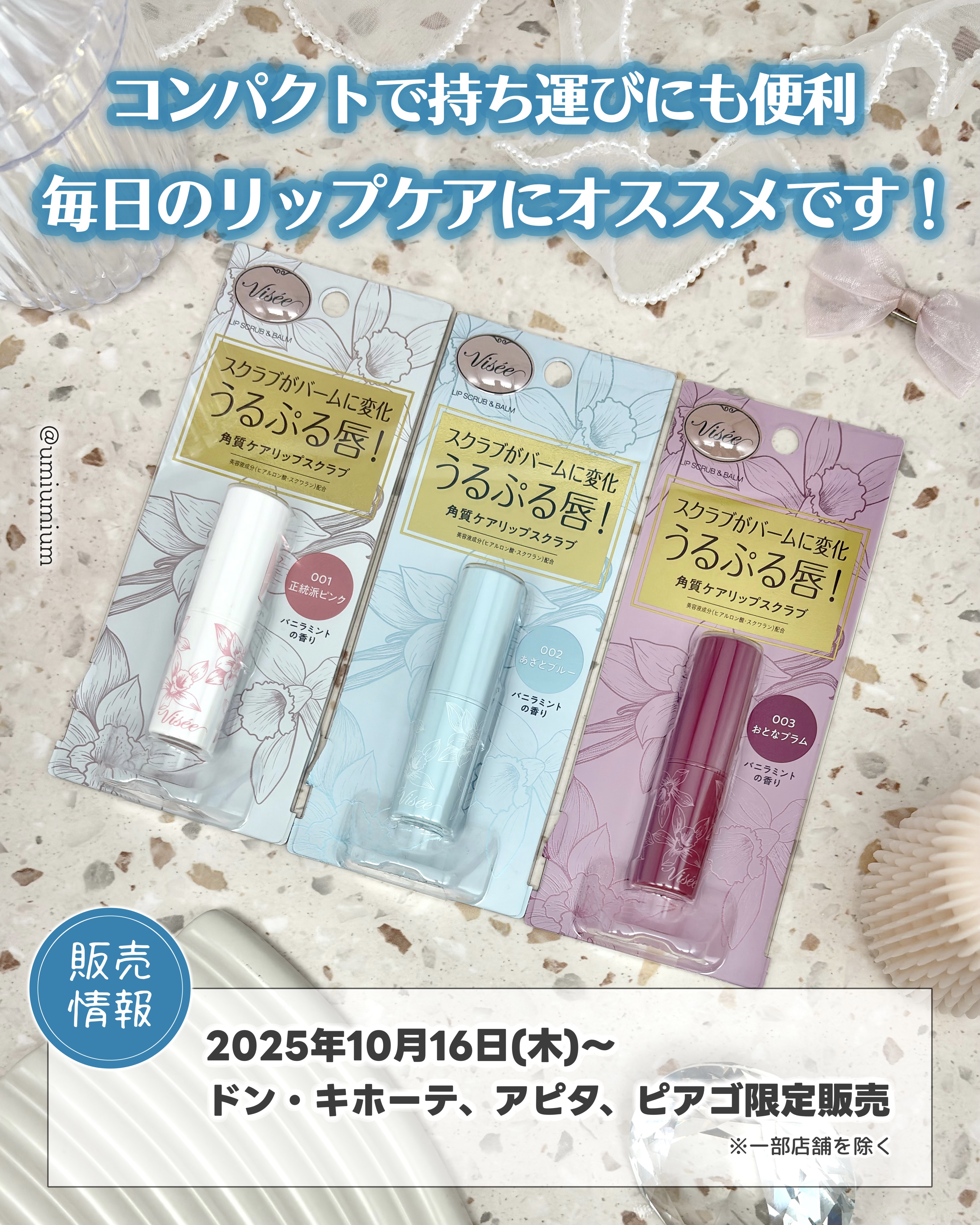 Viseeリップスクラブ&バームドンキ・アピタ・ピアゴ限定2025.10.16発売PU003おとなプラム💜ほんのりパープルで大人っぽく以前発売時に購入してすごくよかったので発売嬉しいです♡*シュガースクラブで角質ケア*なめらかな塗り心地でうる...