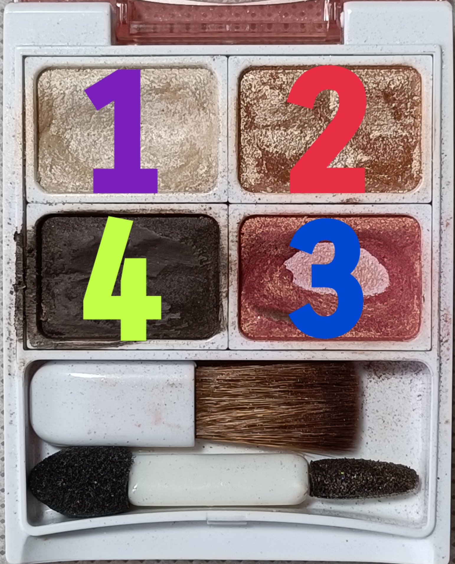 コレは、少し前に、たまたまドンキに行った際に、目に入り、少し気になり、テスター試してみたり、カラー展開を見たりしている内に、つい、欲しくなり、試しに、ひとつ購入してみました。 すると、まず思ったのは、しっとり感があり、粉がかなり細かく、繊細で、柔らかく、アイシャドウブラシで、少しアイシャドウの表面を滑らせただけで、かなりドバッ!と粉がついたため、かなり驚きました。 しかしながら、粉質が柔らかいため、ぼかしやすくもあり、アイメイクの失敗もしにくく、綺麗なグラデーションアイメイクが、誰でも簡単にできちゃうような、超優秀な、アイシャドウパレットだと思います。 さらに言いますと、何と、このアイシャドウパレットのお値段が、驚きの税込価格で550円なのです!