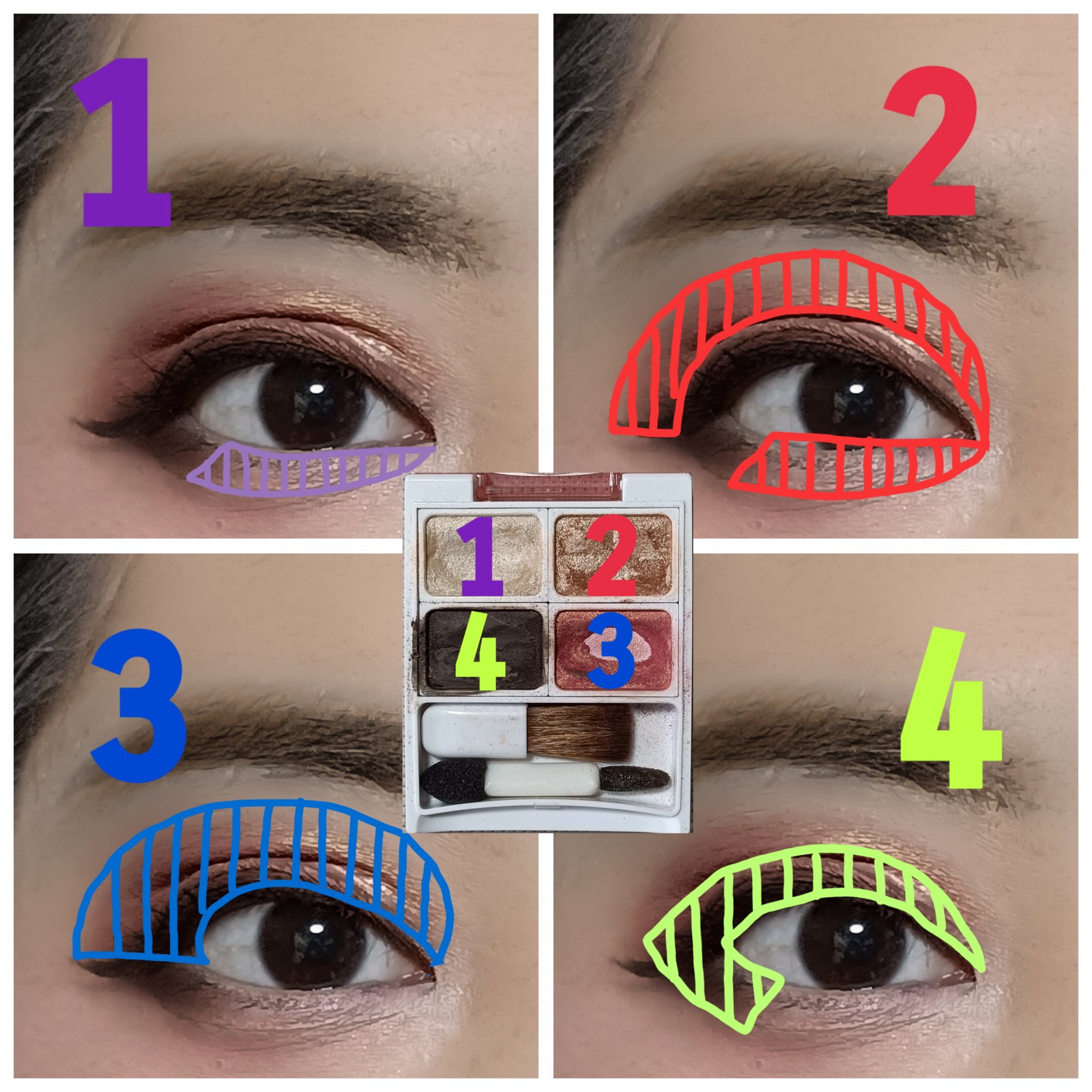 アイシャドウパレットは、UR GLAM アイシャドウパレットを、使用しました。 リップは、M・A・C リップスティック ピーチストックを、唇全体にまんべんなく塗ります。