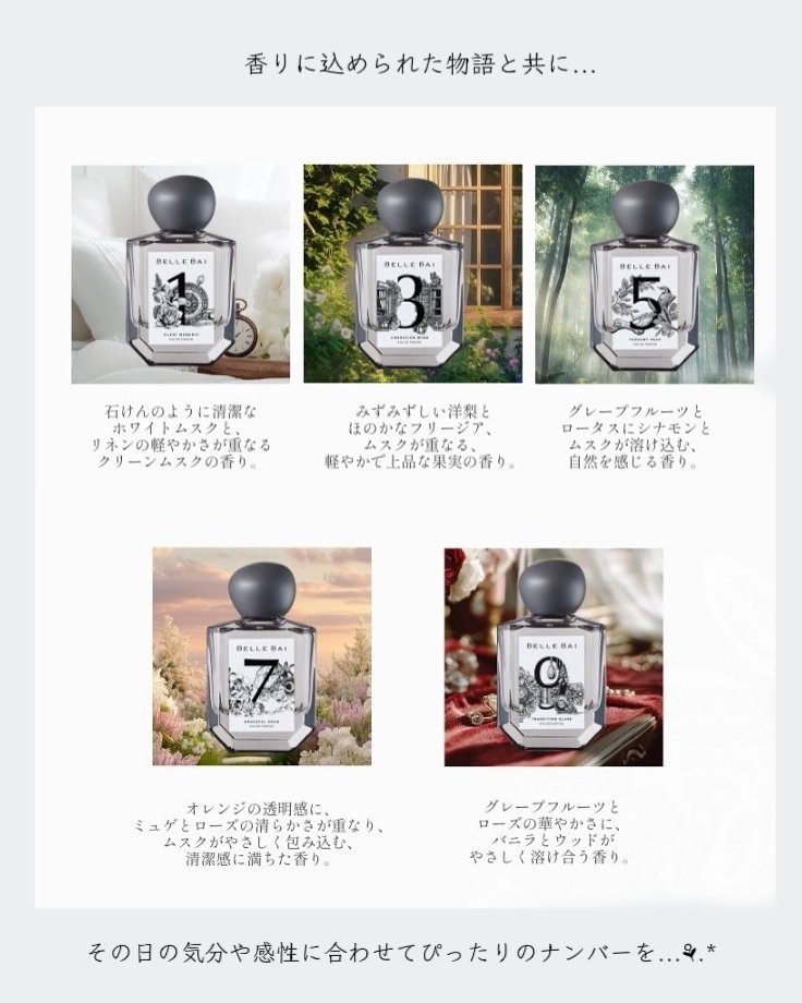 \私の日常を特別なものへ…/纏う香りで気分って変わるから不思議だよね♡BELLEBAIベルナンバー7オードパルファン(美しい人生への道しるべ)50mL¥3,000(税込)『BELLEBAI(ベルバイ)とは?』「福岡から美しさを届けたい」という...