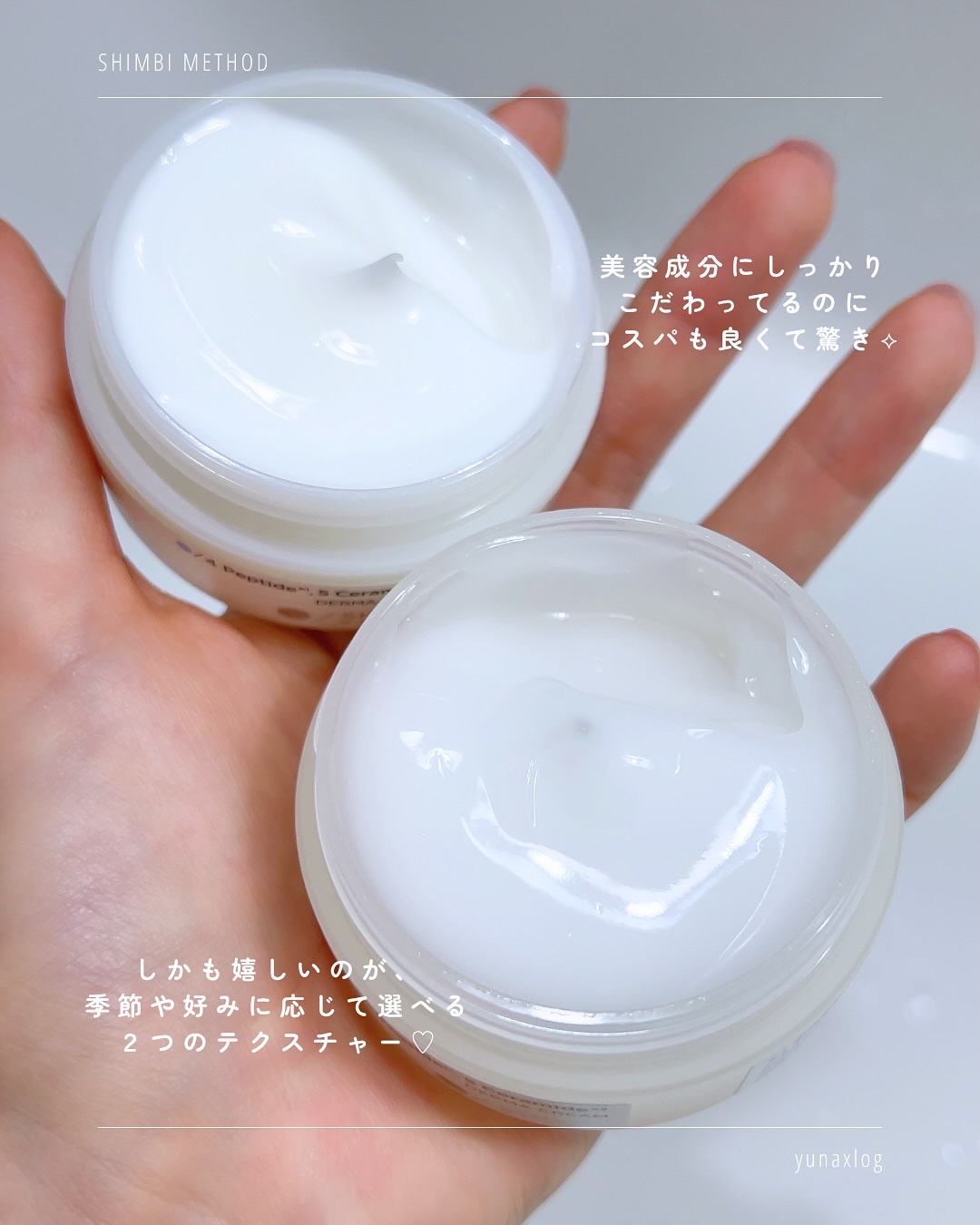SHIMBIMETHODダーマクリーム4ペプチド5セラミド(リッチモイスト)ダーマクリーム4ペプチド5セラミド(モイストクリア)@shimbimethodMERY様から商品をご提供いただきました✨✨『うるおいバリアで肌ふっくら』を実現する3D...