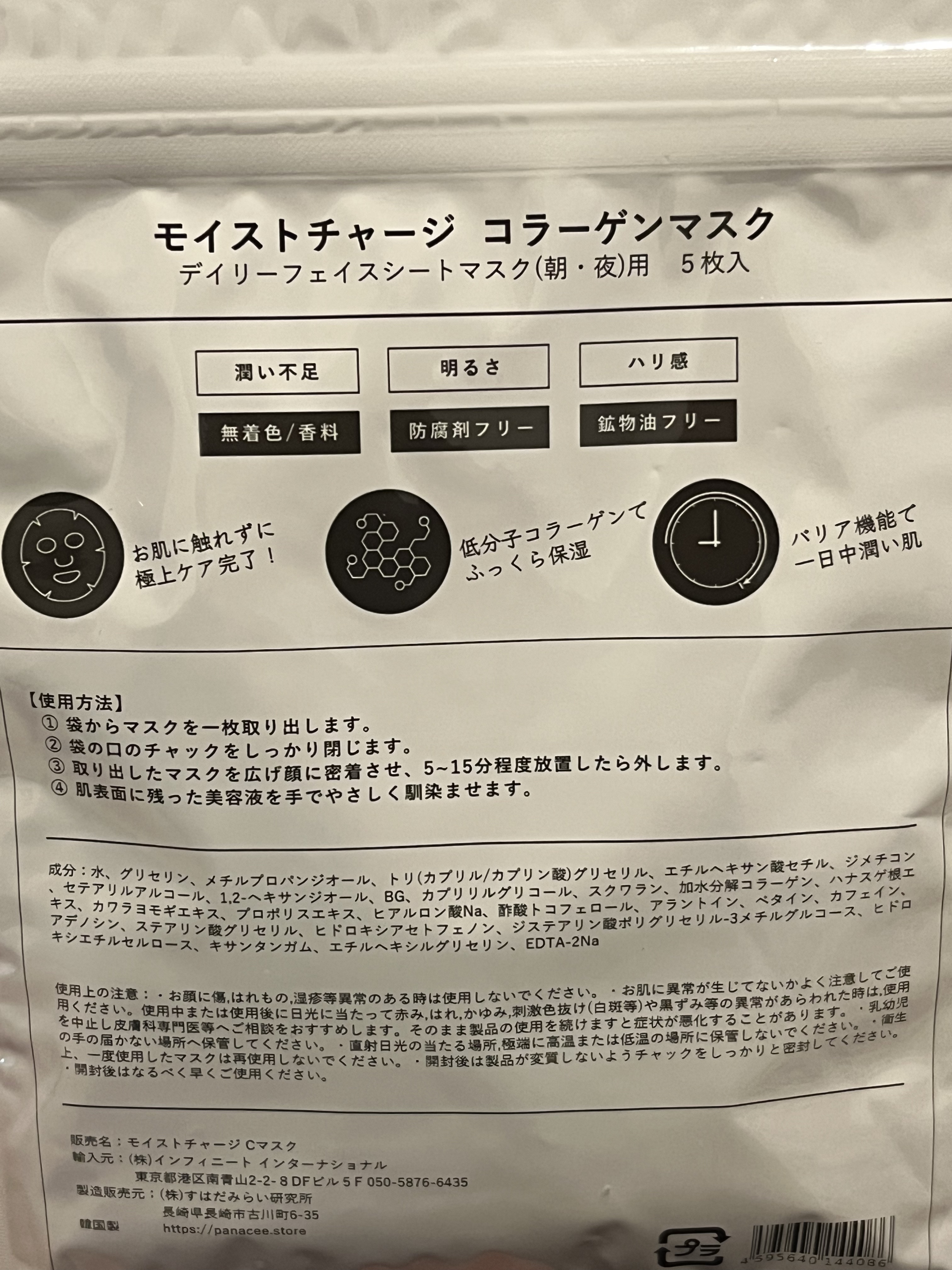 PANACEEフェイスパックこのパック密着力がすごい👏薄いシートがお肌にピタッと密着ししっかり水分チャージできる🪞コラーゲン成分がたっぷりで美容液がお肌にぐんぐん入っていく感じ◎柔らかい使用感で、パック後はお肌がしっとり〜💫✨高保湿で乾燥が気...