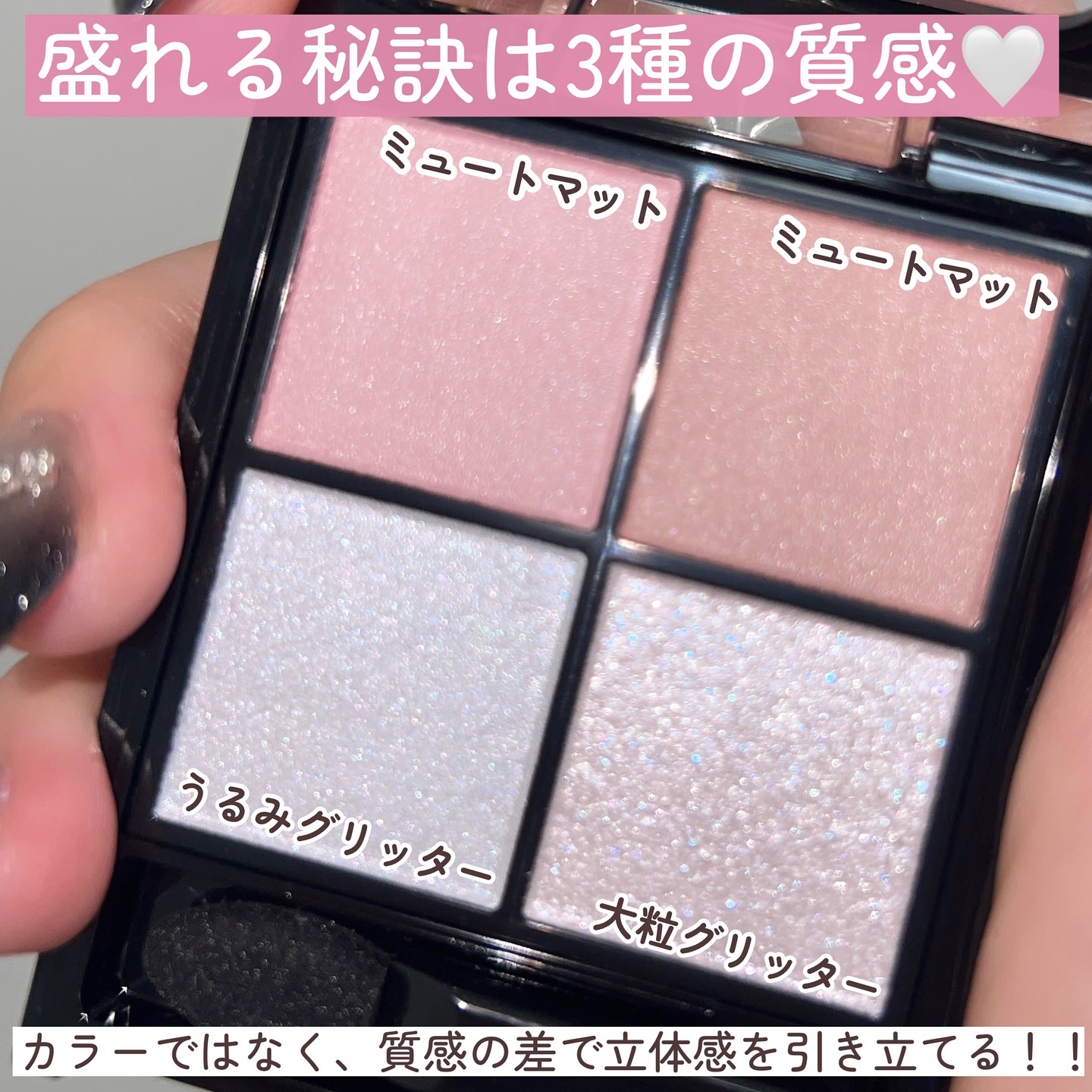 しっとりなめらかな粉質で、肌に光が溶け込む。 ツヤの美しさや発光具合は写真の通り。 ひと塗りで極上の艶を纏うことができます。 私が1番感動したのは 03 パールグロウ 水色やパープルをはじめとした細かいラメがぎっしり。 まるでダイヤモンドのような輝きでこれが最高💎 いざ肌に乗せると透明感たっぷりで白浮きしません。 今日アイシャドウとして使ってみたらまぶたが濡れたように艶めいて最高だった!! ラメ大好き芸人のみなさんは絶対チェックして欲しいです。 パケもしっかり可愛いです♡ 中身も見た目ももはや無敵。 これ、買わない理由ある??