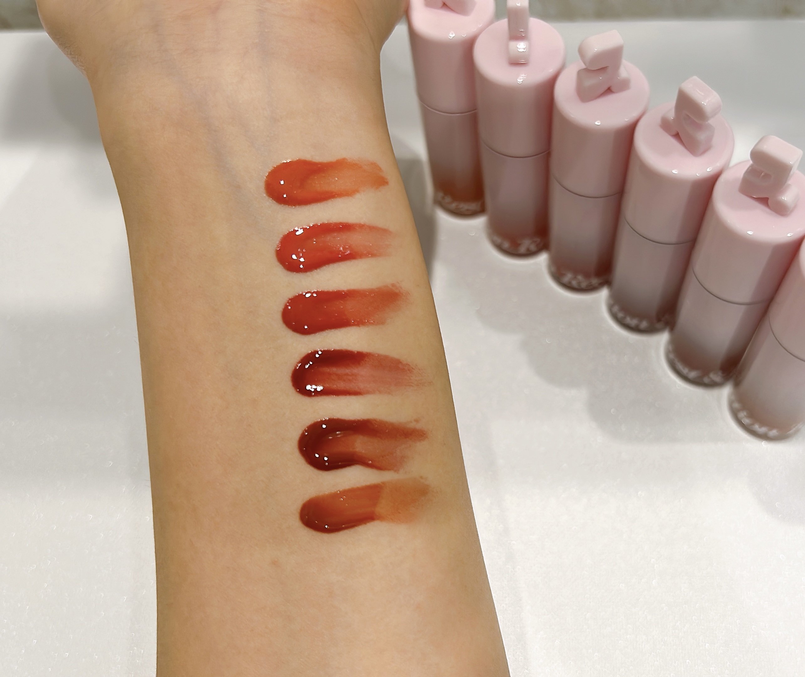 R&RBeauty|ウォーターグレーズリップティントまるで"水彩画"みたいな透けツヤリップ。水彩発色×優れた持続力で、飲み会でも色落ちしにくい、まさに“#飲み会リップ”軽く塗れて、うるおいもちゃんと続くよ🫶【全6色】01ベアピーチ:フレッシュ...