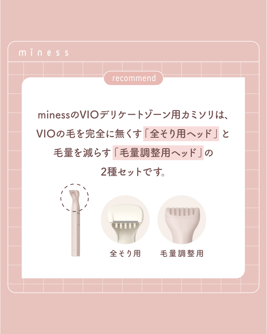 アンダーヘアのケア、どうしてる?👀人気の形やそれぞれのメリットをご紹介します🌼自分に合ったスタイルで、快適なケアを楽しんでくださいね✨アンダーヘアのケアにおすすめな、minessVIOデリケートゾーン用カミソリは🌼全そり用と毛量調整用の2種類...