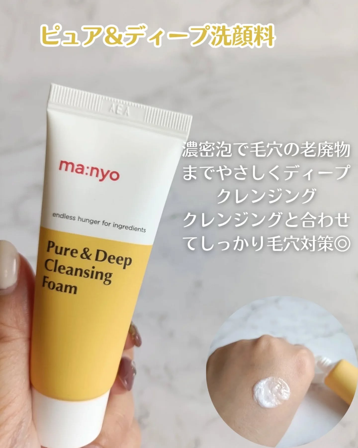 - <内容量>ピュア&ディープ洗顔:20ml・ピュア クレンジング オイル:25ml 大人気ピュアクレンジングラインからトラベルセットが登場! 約6回使える!ミニサイズの洗顔料とクレンジングオイルのトラベルセット 【ピュア&ディープ洗顔料】 ・濃密泡で毛穴の奥の老廃物までやさしくディープクレンジング ・セラミド※9、ヒアルロン酸※10配合でつっぱりにくい洗い上がり ・イランイランとローズの香り 【ピュア クレンジング オイル】 ・累計販売数1,900万本※6を突破したma:nyoのベストセラー商品 ・14種の植物オイル※8配合で保湿しながらメイク・毛穴のざらつきもしっかりオフ ※6 2025年6月10日累計販売数基準 ※8 ダイズ油、セイヨウハシバミ種子油、ブドウ種子油、オリーブ果実油、オレンジ果皮油、ホホバ種子油、ティーツリー葉油、ラベンダー油、ヒマワリ種子油、コメヌカ油、ババス油、月見草油、ツバキ種子油、アルガニアスピノサ核油(皮膚コンディショニング剤) ※9 セラミドNP(皮膚コンディショニング剤) ※10 皮膚コンディショニング剤 2025年8月30日(土)から順次全国のセブン‐イレブン※1にて発売いたします。 ※1 一部お取り扱いのない店舗がございます