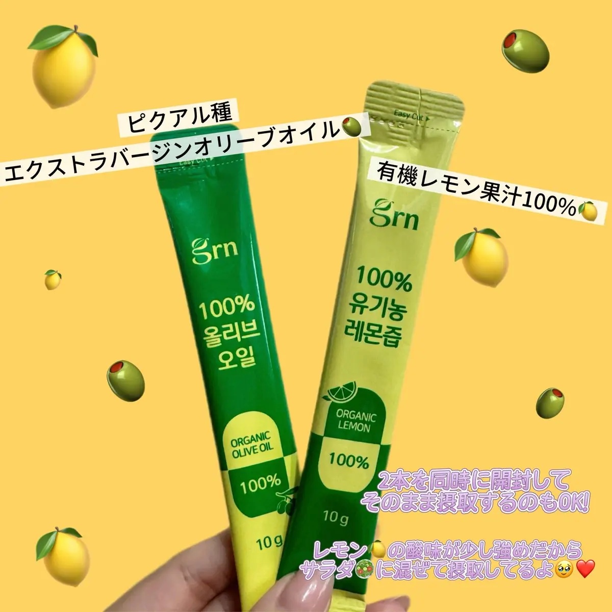 【PR】grn+オリーブオイル&有機レモン果汁をいただきました✨オリーブオイル&有機レモン果汁はエキストラバージンオイルと有機レモン果汁がそれぞれ別のスティックになっていて2本を一緒に摂取するのがおすすめ🍋🫒✨特に午前中に飲むのがおすすめのよ...