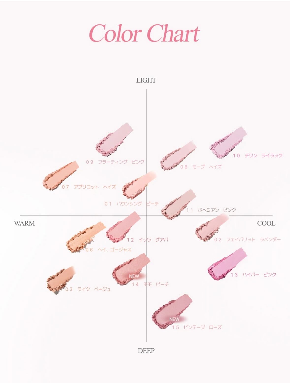 - 柔らかいベルベットパウダーがムラなく密着し、 くすみにくく明るい印象が続くブラーリングチークです。
