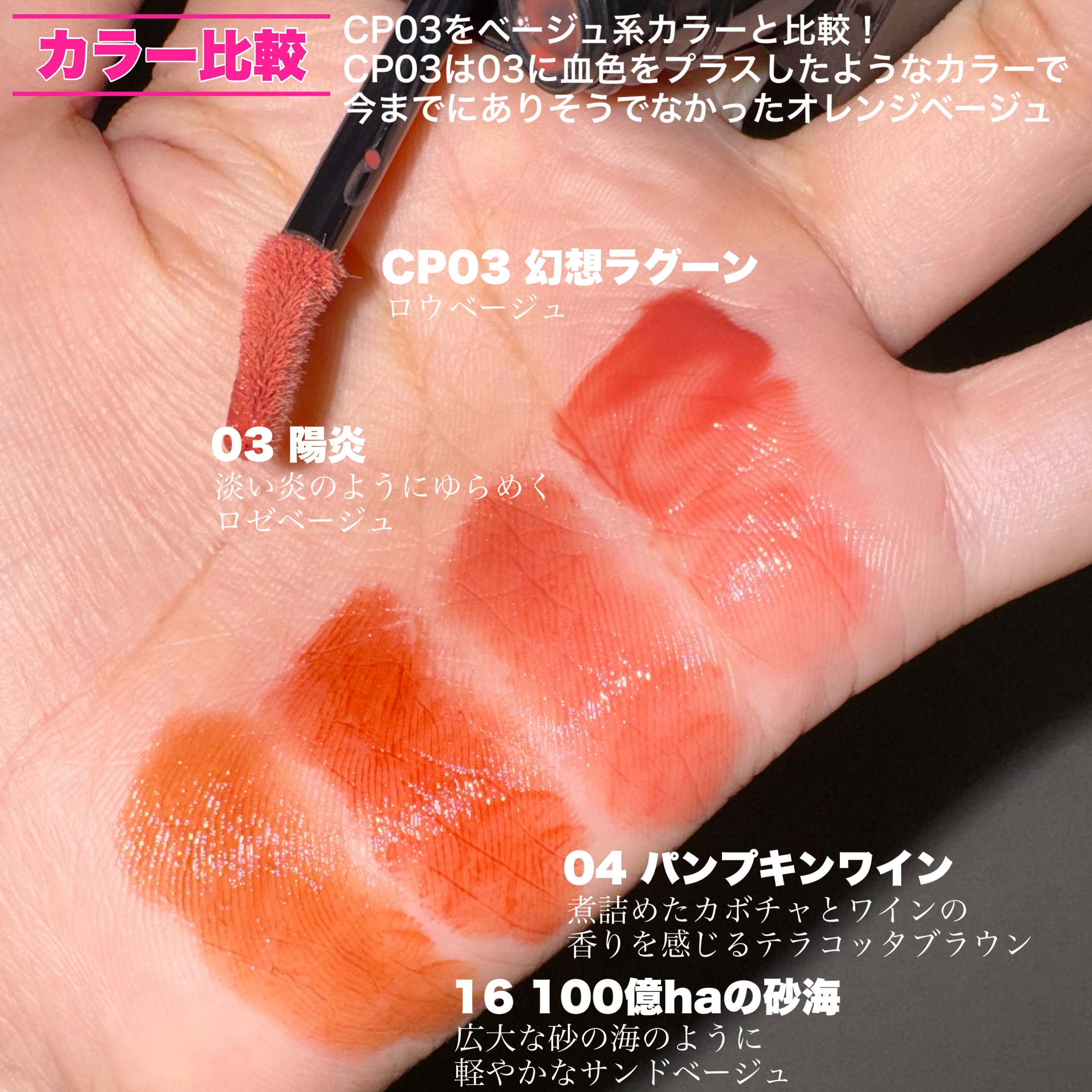 ひとぬりでとろけてツヤがあふれだす リップモンスターツヤバース。唇から蒸発する水分を活用してとろツヤジェル膜に変化する独自技術で、落ちにくい。 トロトロなのに唇に乗せると嫌なベタつきはなくてムラにもならずにスルスル伸び広がってかつしっかりカラー感も楽しめる濃密な発色♡ これは艶リップ好きさん試してみて欲しい! もし一色しか選べないとしたら私の推しはG02 ピンクムーンの雫♡