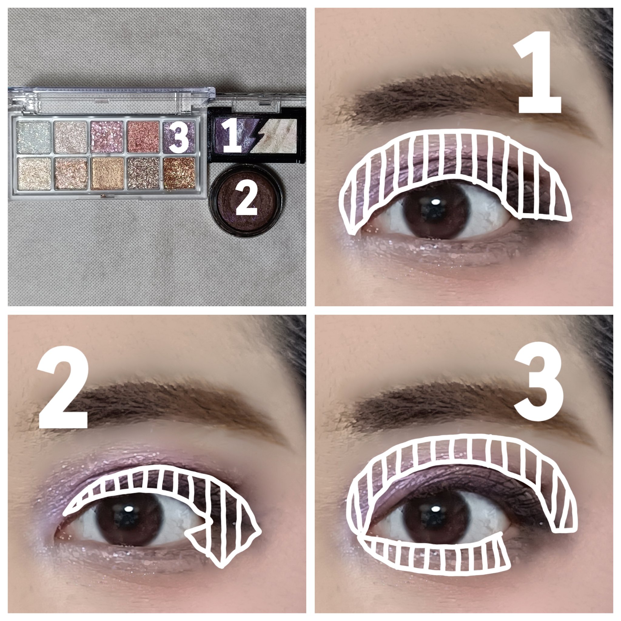 アイシャドウパレットは、URGLAM UR GLAMBLOOMING EYE COLOR PALETTE 02を、使用しました。 マスカラは、MAYBELLINE NEW YORK コロッサルボリュームエクスプレスを、まつ毛全体にまんべんなく塗ります。 リップは、wet 'n' wild MegaLast Lip Colorを、唇全体にまんべんなく塗ります。