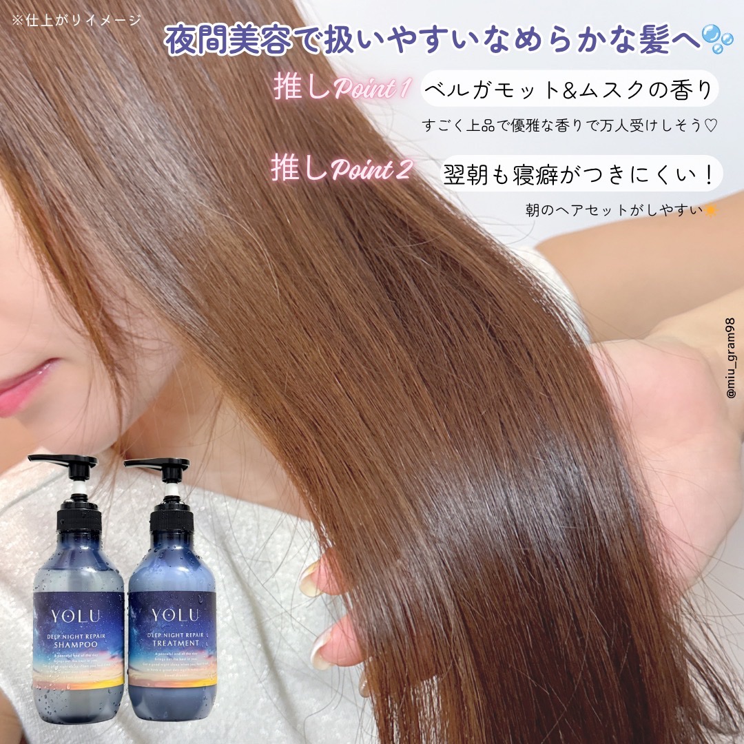 🤍🤍⋆⋆🤍💜YOLU全3シリーズのシャンプー&トリートメントがリニューアル🎉YOLUディープナイトリペアシャンプー/トリートメント【ベルガモット&ムスクの香り】各1,540円(税込)440mL/440g使ってみたよ🥰💗上品で優雅な香りが...