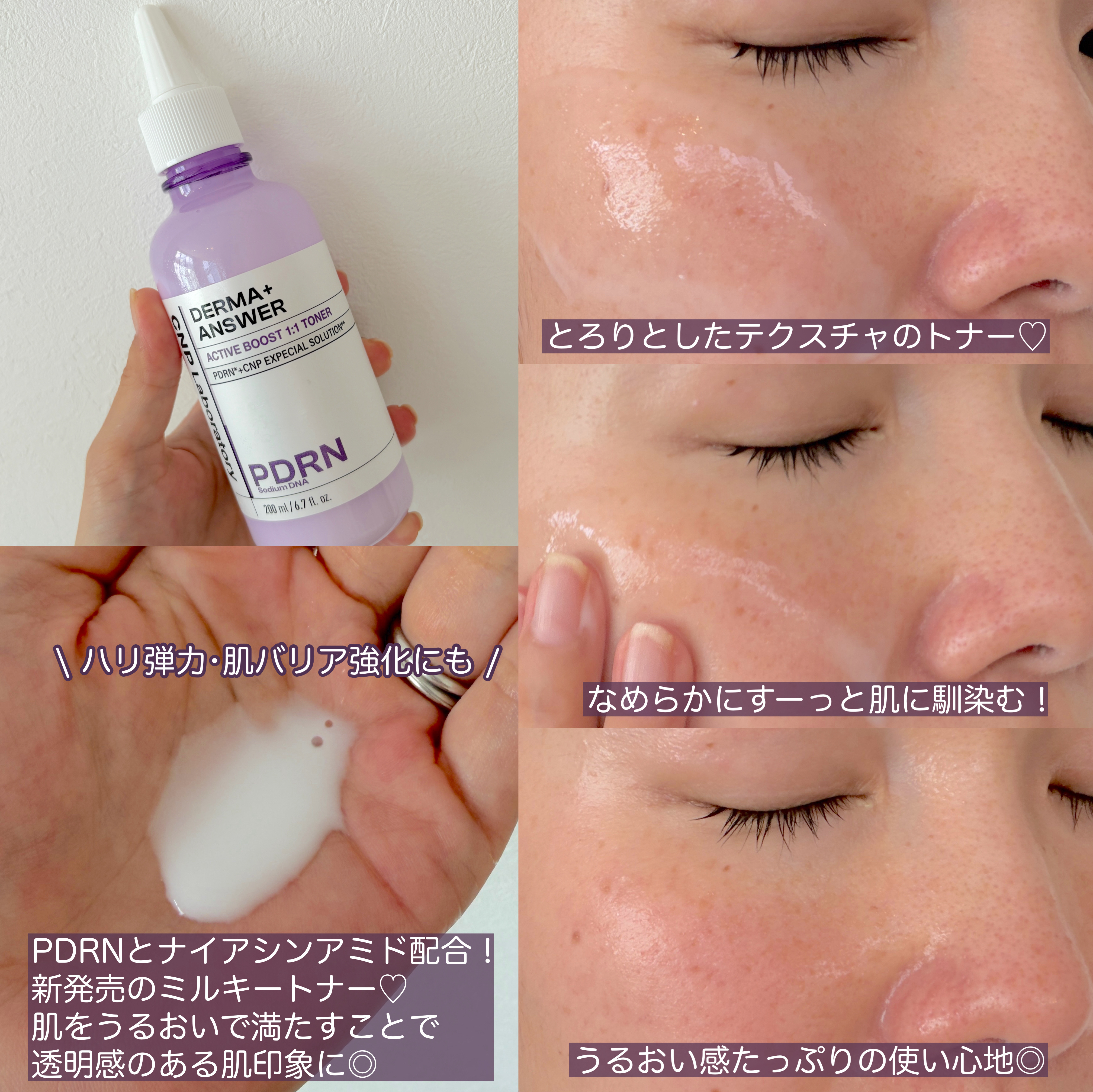 CNPダーマアンサーPDRNアクティブブーストトナー塗るスキンブースターのサーモン由来のPDRNと美白ブースターのナイアシンアミド5%、保湿ブースターの7種の米由来成分*を配合したトナー✨️ハリ感と保湿感を与えてくれます。*コメエキス、オリザ...