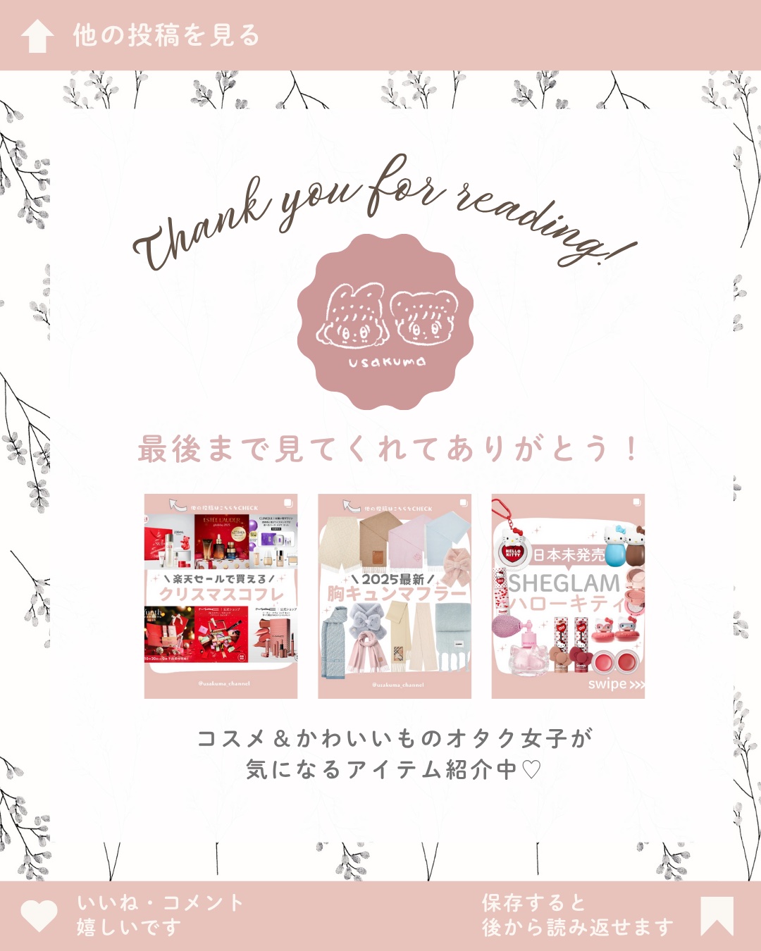 トーンアップクリームですがベージュ色で肌の色むらや赤みをナチュラルに整えてくれます 大きなチップでファンデみたいに使える優秀コンシーラー もちっとしたテクスチャーで繊細で鮮やかなボリュームカールを演出してくれます👀 デイジークのアイシャドウは初心者さんにも使いやすい色展開✨ マスクに付きづらくて人気のファンデ キャンメイクのアイシャドウはみんな一度は買ったことあるのでは‥? ブルベさん向きカラーですがイエベの私でも使いやすい激カワ色です! ミニサイズですがカラバリが豊富で使えるカラーが揃っているアイシャドウです