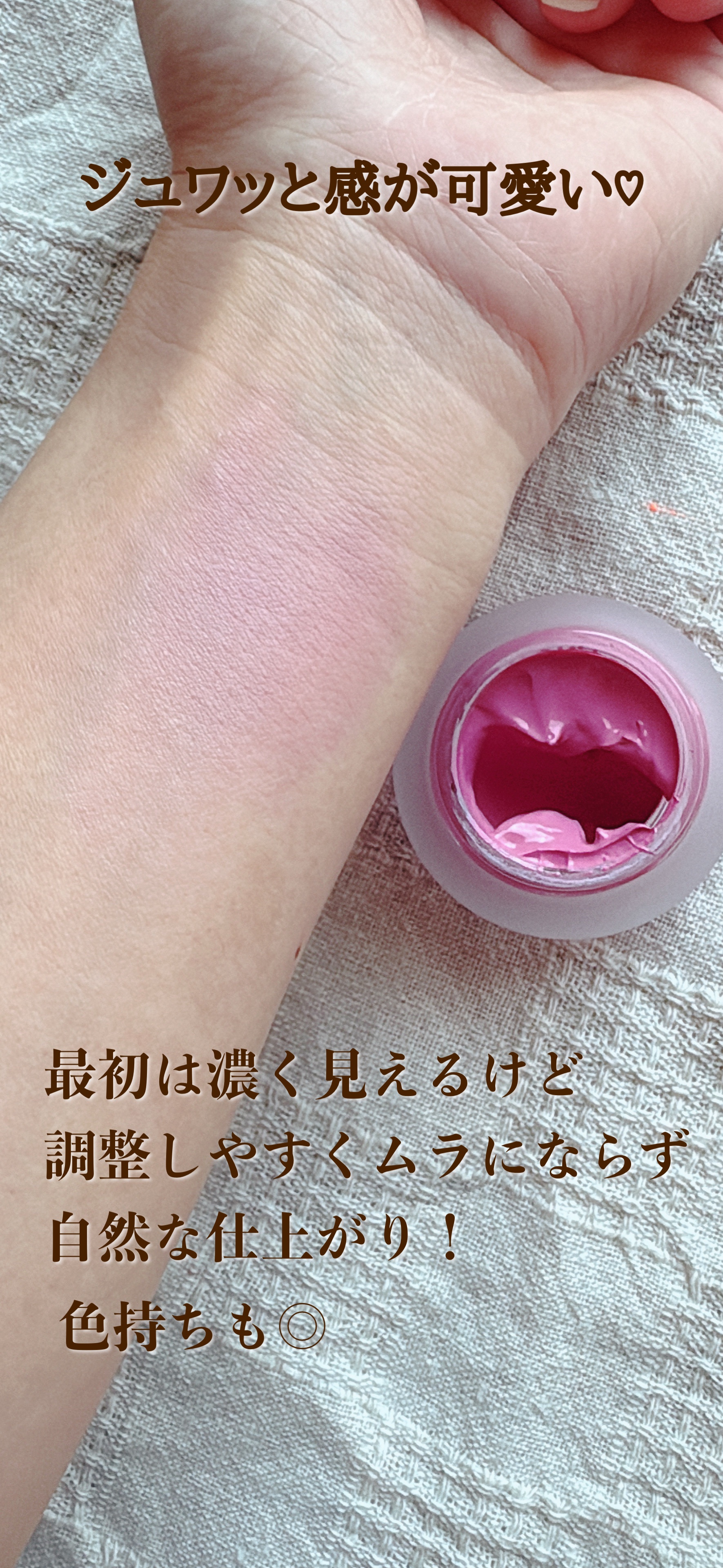 | じゅわっとみずみずしいリキッドタイプのチークで、肌に馴染ませやすく自然な血色感を演出できてかなり可愛い! | 詳細を見る | ||