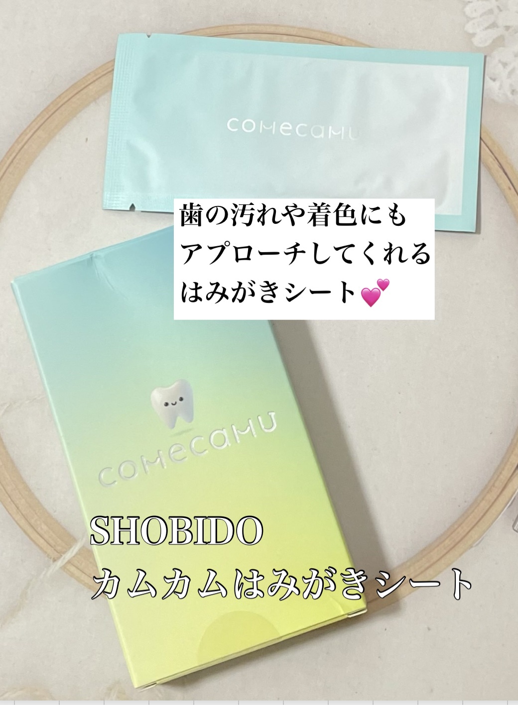 SHOBIDOcomecamu/カムカムはみがきシートPoint1♡30分貼って磨くだけの簡単ステップ。朝の支度途中にささっと使えるPoint2♡コーヒーやお茶の着色汚れも浮かせて落としやすい※Point3♡どこでも持ち運びしやすい携帯サイズ...