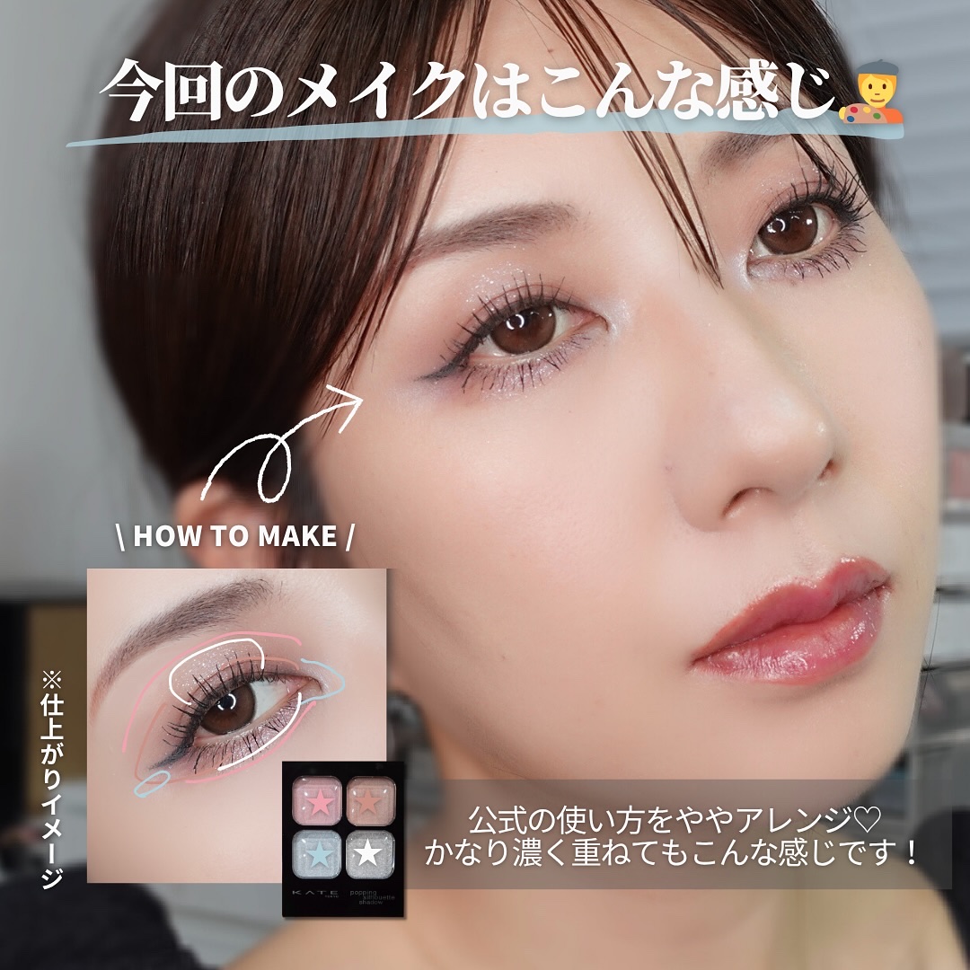 \淡色パステルなポッピング登場✨/▶︎KATEポッピングシルエットシャドウEX-4コットンブルーポップEX-5コットンピンクポップ大好きなポッピングシルエットシャドウの限定色がかわいい〜❣️😍もうこの夢かわパステル‼️さすが作るの上手いなぁ⚐...