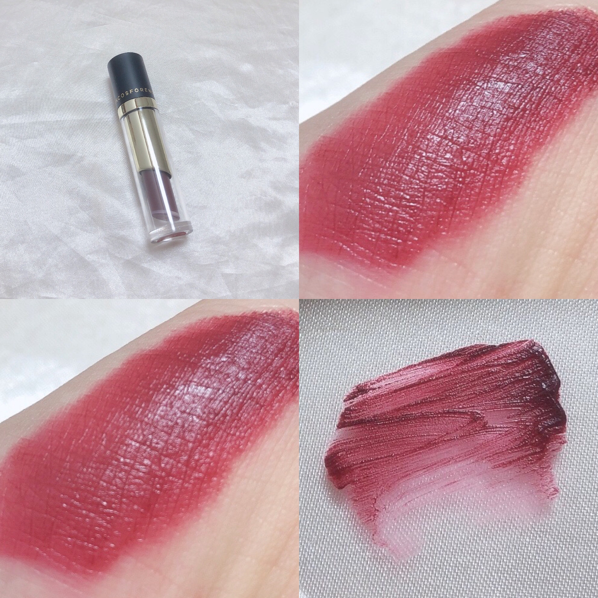 .#dinto252深みのある赤悪役魔女みたい!笑777グレープみたい青み入ってる!乾燥はしないけど潤いはあまり強くなくてちょっと縦シワが気になる💦色持ちはよかった!写真にもあるけどティッシュオフでは落ちないしクレンジングしても落とすの大変だ...