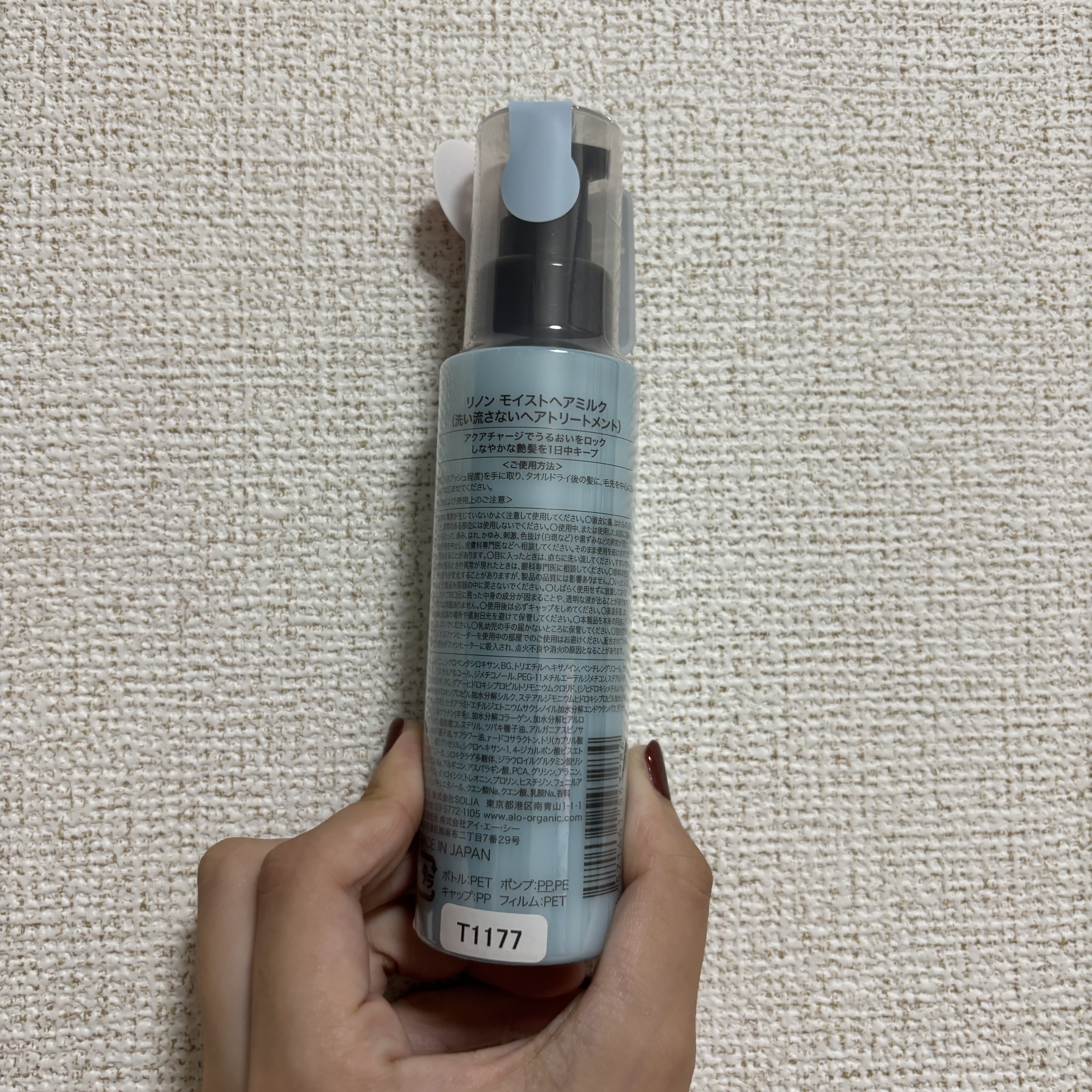 - <100ml> 水、ジメチコン、シクロペンタシロキサン、BG、トリエチルヘキサノイン、ペンチレングリコール、セタノール、ミリスチルアルコール、ジメチコノール、PEG-11メチルエーテルジメチコン、ステアルトリモニウムクロリド、PG、グアーヒドロキシプロピルトリモニウムクロリド、(ジヒドロキシメチルシリルプロポキシ)ヒドロキシプロピル加水分解シルク、ステアルジモニウムヒドロキシプロピル加水分解ケラチン(羊毛)、セテアラミドエチルジエトニウムサクシノイル加水分解エンドウタンパク、グリセリン、加水分解ケラチン(羊毛)、加水分解コラーゲン、加水分解ヒアルロン酸、ラノリン脂肪酸コレステリル、ツバキ種子油、アルガニアスピノサ核油、ホホバ種子油、サフラワー油、γ-ドコサラクトン、トリ(カプリル酸/カプリン酸)グリセリル、シクロヘキサン-1,4-ジカルボン酸ビスエトキシジグリコール、シロキクラゲ多糖体、ジラウロイルグルタミン酸リシンNa、PCA-Na、アルギニン、アスパラギン酸、PCA、グリシン、アラニン、セリン、バリン、イソロイシン、トレオニン、プロリン、ヒスチジン、フェニルアラニン、フェノキシエタノール、クエン酸Na、クエン酸、乳酸Na、香料