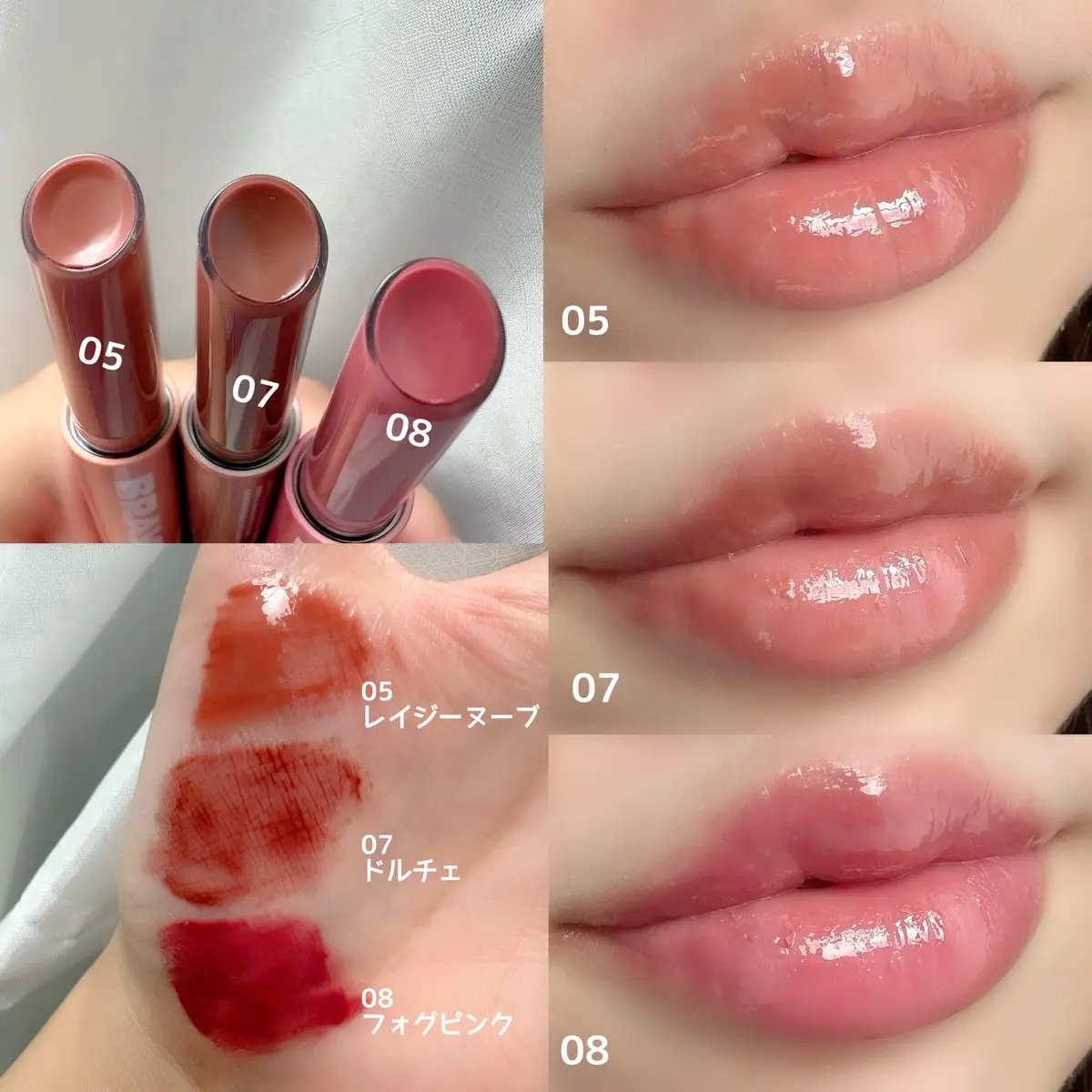 縦じわ気になる方におすすめ!ブレイメルティングリップスウィート05レイジーヌーブ07ドルチェ08フォグピンク(全10色)各1,680円(税込)ぷるんとした艶唇になれる!ブレイのリップバーム、メルティングリップスウィートスティックタイプでカチカ...