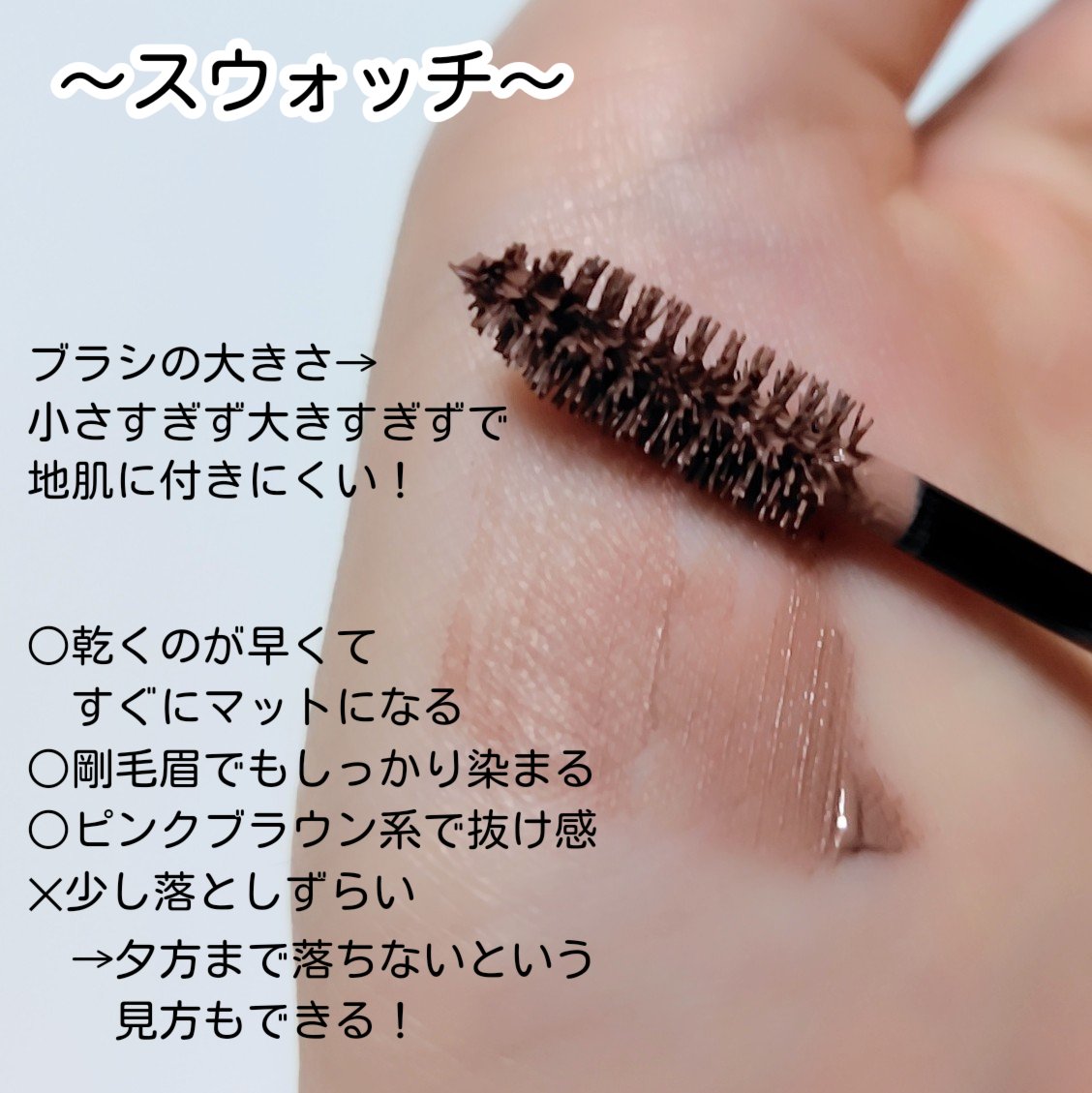 rom&ndハンオールブロウカラ05ダスキー・ローズミニミニサイズで可愛いPlaza825円で購入色は、ほのかなピンクローズベージュ自然な薄眉になるブラシは固めで少し斜めになっている(普通サイズは真っ直ぐだけどね)塗りやすいしだまにもならず良...