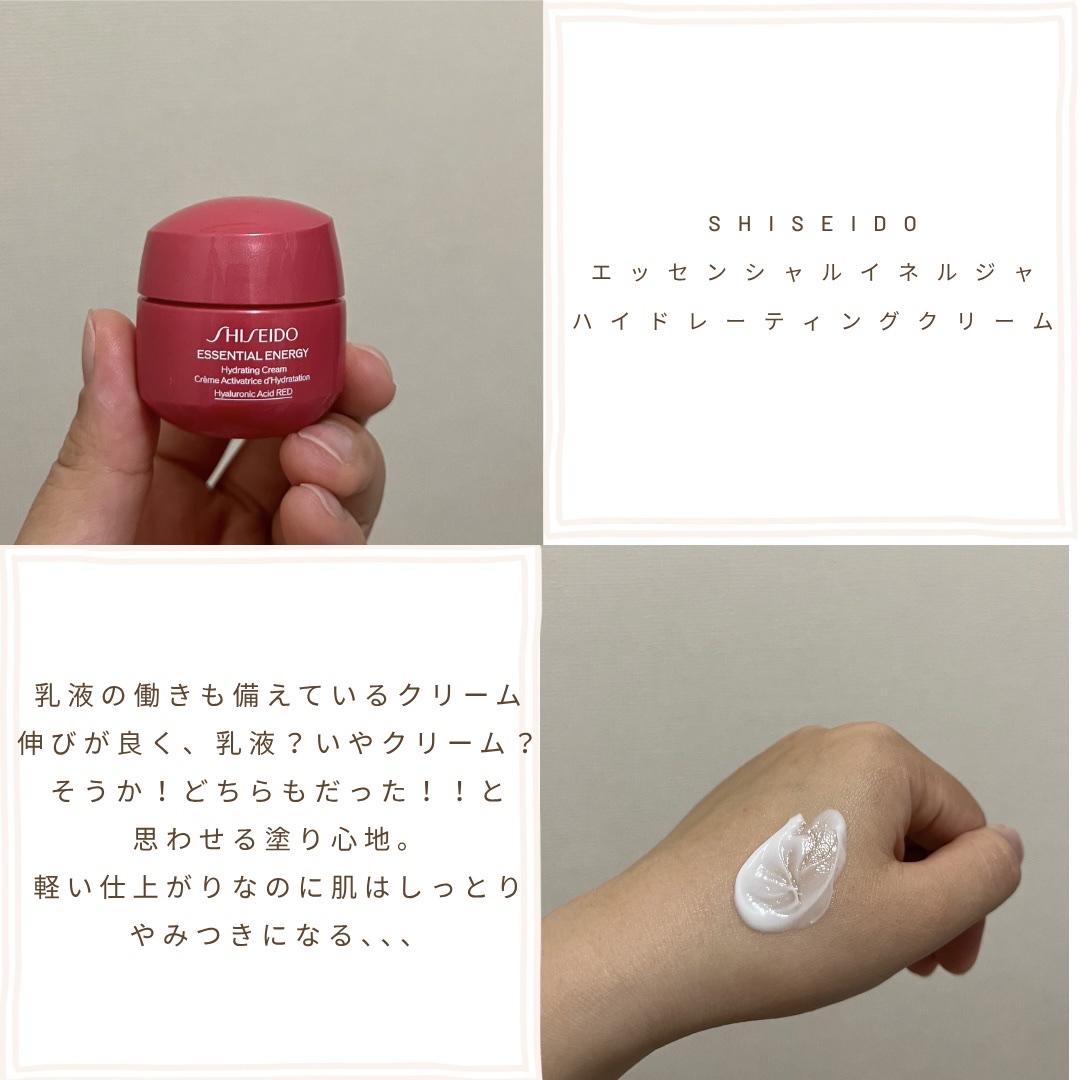 - 【SHISEIDO オイデルミン エッセンスローション】 水,エタノール,DPG,BG,グリセリン,ジグリセリン,PEG/PPG-14/7ジメチルエーテル,メトキシサリチル酸K,乳酸桿菌/コメ発酵物,PEG-60水添ヒマシ油,ジフェニルシロキシフェニルトリメチコン,2-O-エチルアスコルビン酸,エリスリトール,グリチルリチン酸2K,キサンタンガム,ポリアクリル酸Na,ユズ果実エキス,アセチルヒアルロン酸Na,ヒアルロン酸Na,ハマメリス葉エキス,カルボマー,ジイソステアリン酸ポリグリセリル-2,水酸化K,EDTA-2Na,イソステアリルアルコール,イソステアリン酸,クエン酸Na,クエン酸,ピロ亜硫酸Na,フェノキシエタノール,香料,赤227,黄4 <M103958-202> 【SHISEIDO アルティミューン パワライジング セラム】 水,グリセリン,BG,変性アルコール,ジメチコン,ジグリセリン,PEG/PPG-17/4ジメチルエーテル,PEG-8,ネオペンタン酸イソデシル,トレハロース,(アクリロイルジメチルタウリンアンモニウム/メタクリル酸ベヘネス-25)クロスポリマー,PEG-14M,PEG/PPG-14/7ジメチルエーテル,酢酸トコフェロール,ローズ水,ラウロイルグルタミン酸ジ(フィトステリル/オクチルドデシル),エクトイン,キシリトール,ラウリルベタイン,マヨラナ葉エキス,ヒドロキシプロリン,ツバキ花エキス,ツバキ種子油,ドクダミエキス,カルボキシメチルグルカンNa,ツバキ葉エキス,ツバキ種子エキス,乳酸桿菌/ハイビスカス花発酵液,イリス根エキス,レイシエキス,トリエチルヘキサノイン,(アクリレーツ/アクリル酸アルキル(C10-30))クロスポリマー,エタノール,水酸化K,EDTA-2Na,シリカ,イソセテス-10,ピロ亜硫酸Na,アスペルギルス培養物,BHT,炭酸水素Na,トコフェロール,フェノキシエタノール,クロルフェネシン,安息香酸Na,香料 <M128586-202> 【SHISEIDO エッセンシャルイネルジャ ハイドレーティング クリーム】 水,ジメチコン,BG,変性アルコール,ベタイン,グリセリン,イソヘキサデカン,水添ポリデセン,ジピバリン酸PPG-3,シリカ,ベヘニルアルコール,ステアリルアルコール,ミリスチン酸ミリスチル,ステアリン酸グリセリル(SE),PEG/PPG-14/7ジメチルエーテル,PEG/PPG-17/4ジメチルエーテル,エリスリトール,アミノプロピルジメチコン,2-O-エチルアスコルビン酸,キサンタンガム,カフェイン,ラウロイルグルタミン酸ジ(フィトステリル/オクチルドデシル),ヒアルロン酸Na,ウンシュウミカン果皮エキス,アシタバ葉/茎エキス,ナツメ果実エキス,オタネニンジン根エキス,アセチルヒアルロン酸Na,オウゴン根エキス,ワレモコウエキス,イチヤクソウエキス,ポリソルベート60,ステアリン酸PEG-100,(ジメチルアクリルアミド/アクリロイルジメチルタウリンNa)クロスポリマー,トリステアリン酸ソルビタン,エタノール,カルボマー,EDTA-3Na,水酸化K,イソステアリン酸,メタリン酸Na,水酸化Al,トコフェロール,ピロ亜硫酸Na,ゲットウ葉エキス,ローズマリー葉エキス,フェノキシエタノール,香料,酸化チタン,酸化鉄 <M111295-202>