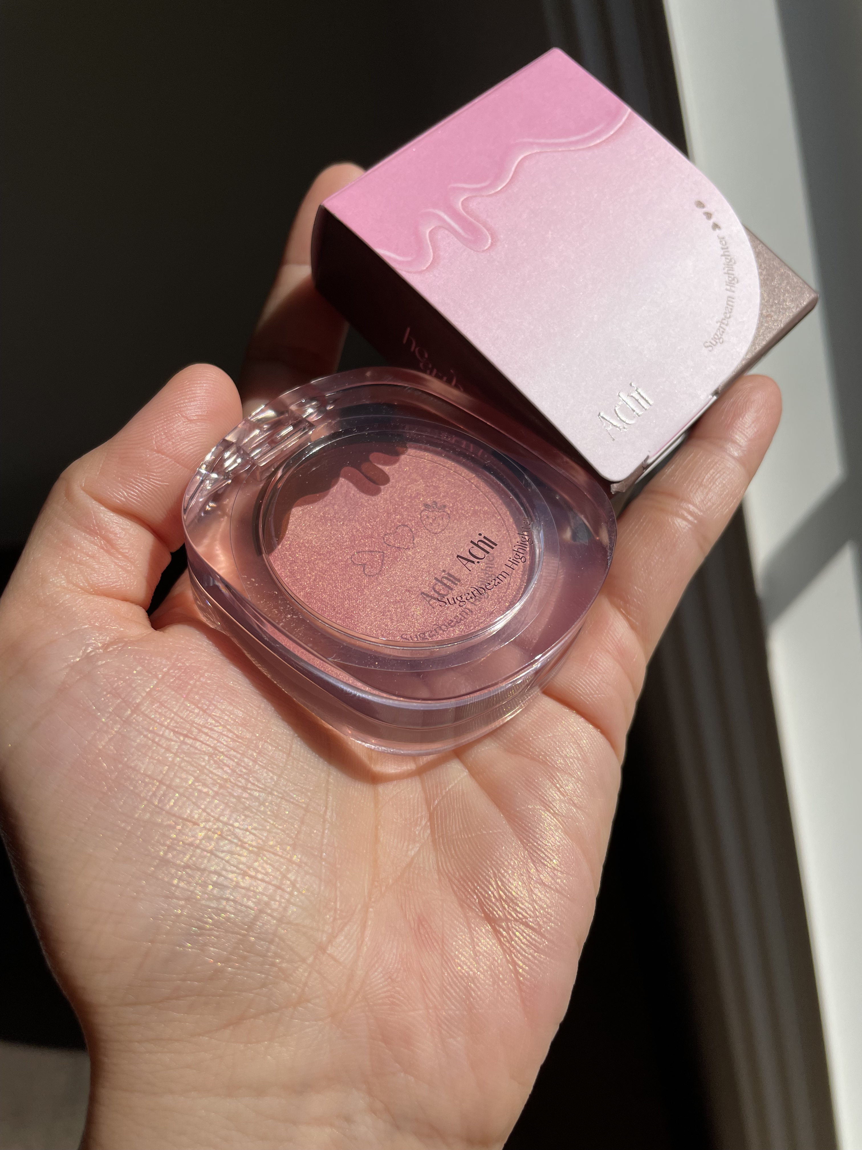 💡A.chi💡シュガービームハイライター01HeartBerry可愛い!!ピンクゴールドのハイライトなんだけど、このピンク味が儚い雰囲気で本当に薄らラベンダー味も感じるような不思議な色味。黄味やゴールドラメも入っているので肌馴染みがいい。つけ...