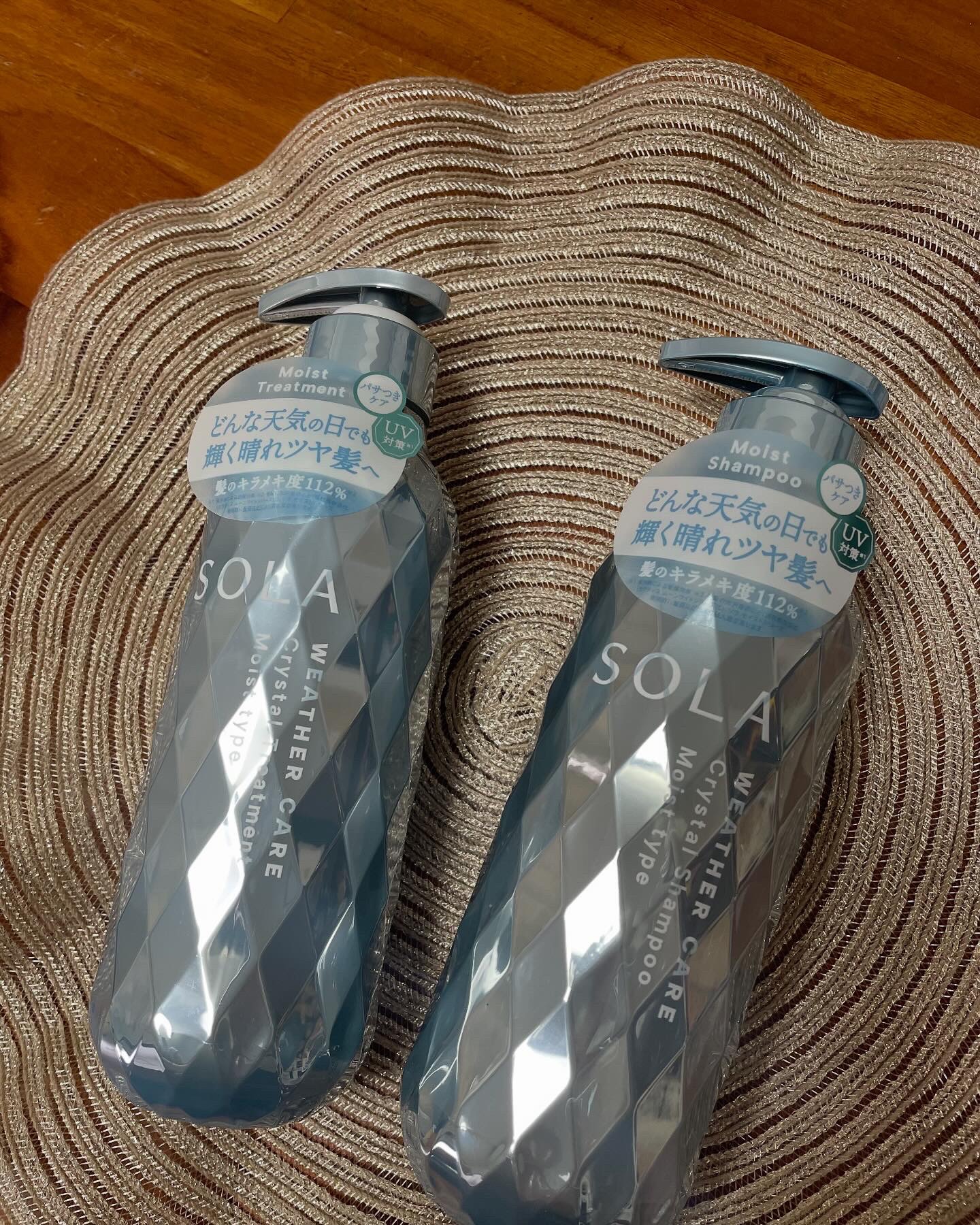 .#PR★SOLAWEATHERCARE (ソラ ウェザーケア) クリスタルシャンプー/ヘアトリートメント モイストタイプキラキラのボトルが素敵✨😍どんな天気の日でも、輝く晴れツヤ髪へ導くウェザーケアブランドなんだって☀️しっとり系で、ピュ...
