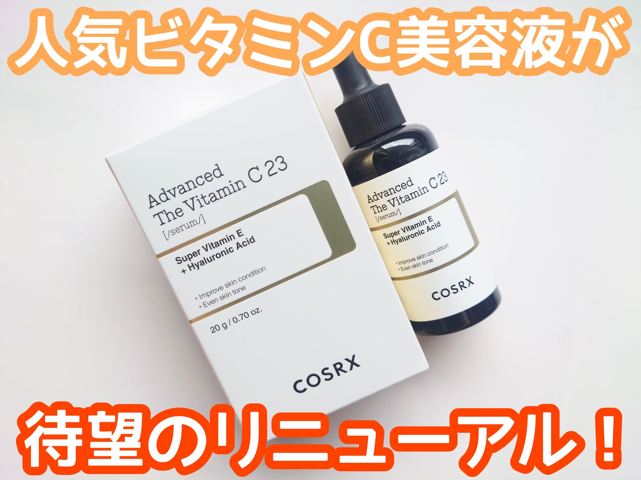 - COSRXの代表商品『RXザ・ビタミンC23セラム』が待望のリニューアル。 発売当初から話題であった原料特有の香りを排除し、香りが苦手だった方にもより使いやすく従来品から改善。 より低刺激な処方に変更。敏感肌さんや肌のコンディションが良くない時でも使用しやすくなりました。