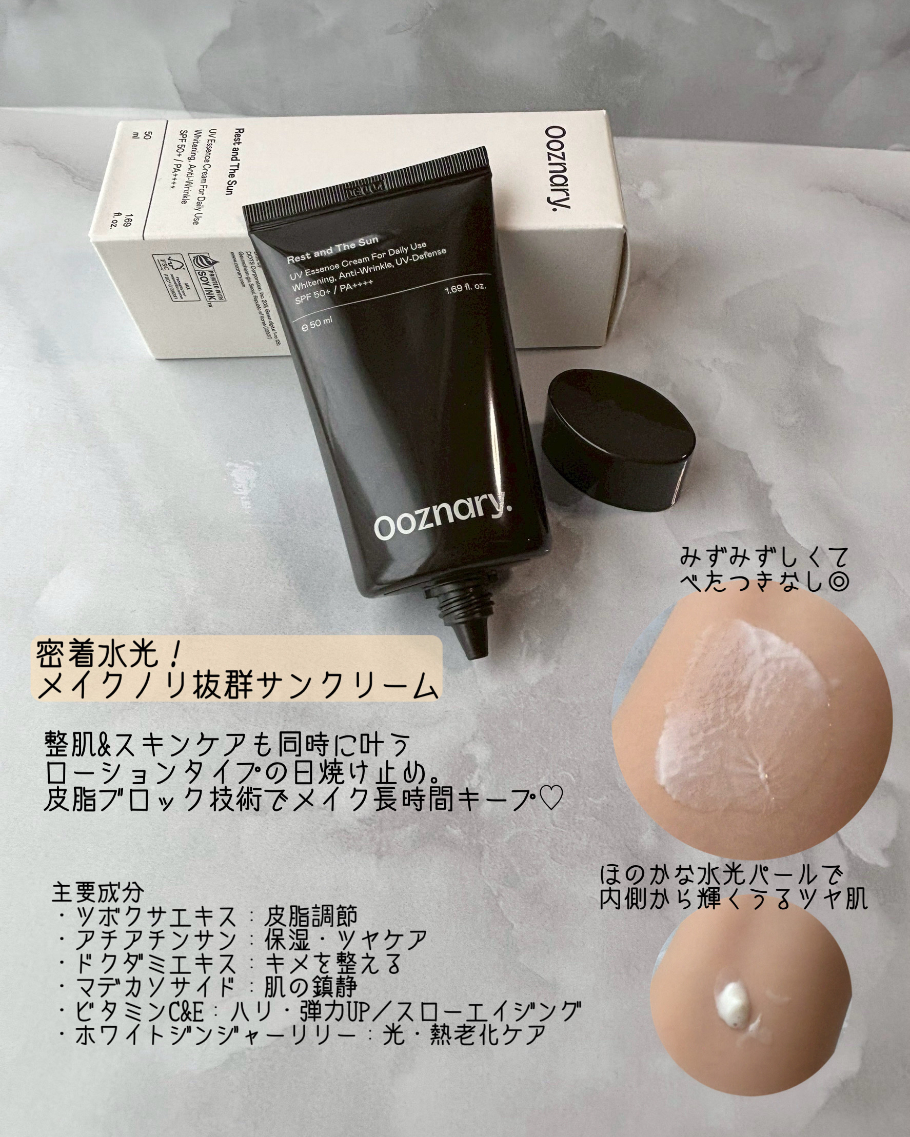 OoznaryRestandTheSun☀️べたつかない、水分クリームみたいな軽さのUVケア。皮脂バランスを整えて、キメの整ったナチュラルツヤ肌へ✨白浮きも目しみも気にならず、たっぷり保湿。韓国メイクアップアーティスト必須の“メイク前UV下地...