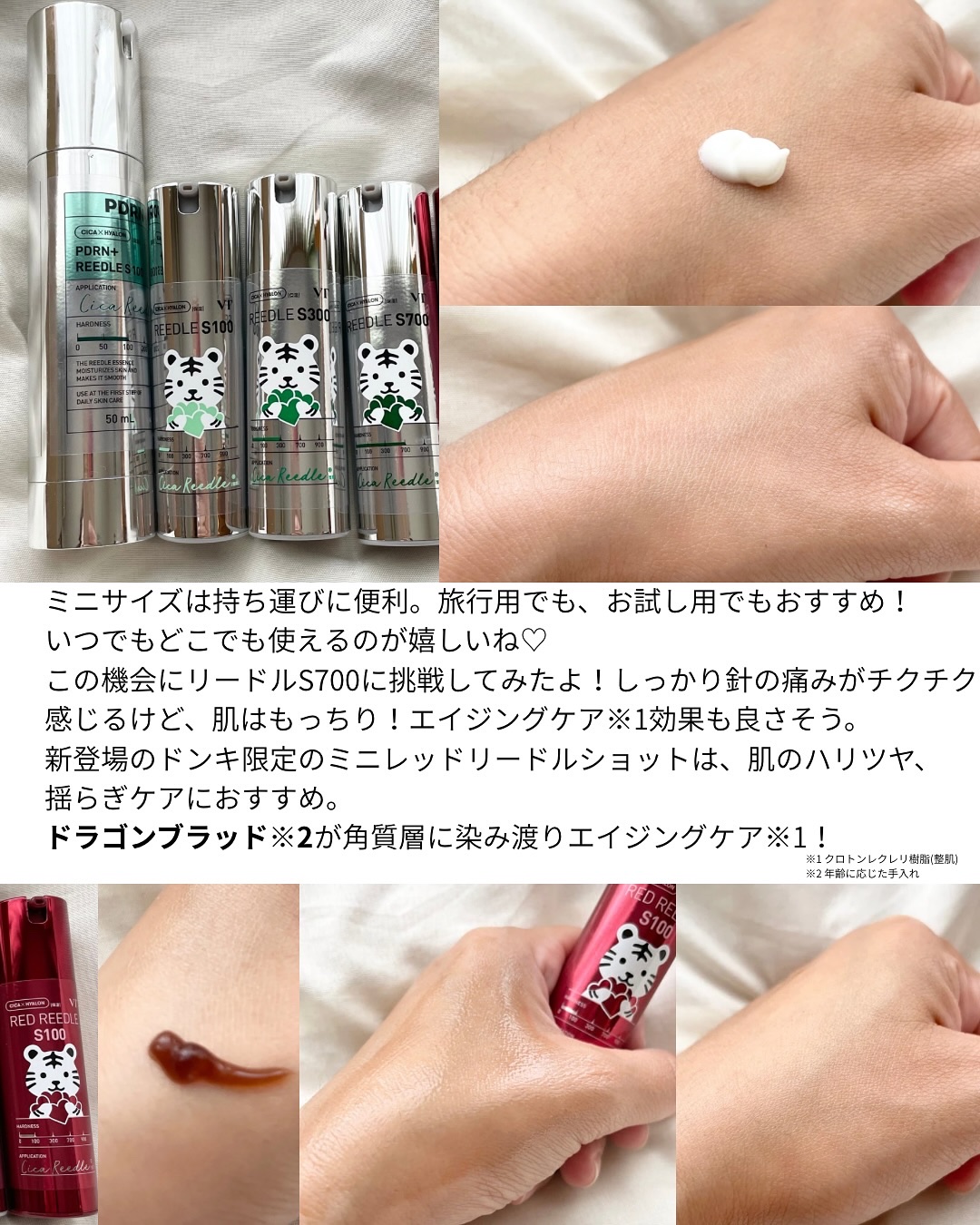 - ミニサイズだから持ち運びに便利! 旅行や出張、お試し用にもぴったり。 リーズナブルな価格帯で、リードルSを使ったことがない方も気軽にお試し可能。 VT独自の成分「CICA REEDLE®」※5や美容成分を配合し、乾燥による毛穴目立ちや肌悩みにアプローチ。 お土産やギフトとしてもおすすめ。 ※5 ツボクサエキス(整肌)、シリカ(スクラブ)