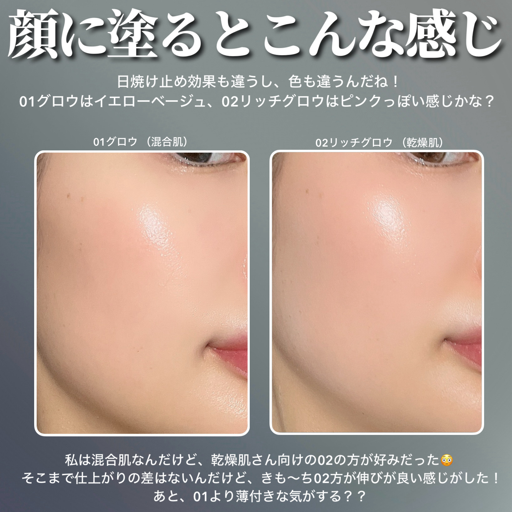 - スパグロウUVトーンアップベースはたったたった一層の差で肌の土台を変える、キメも毛穴も瞬間カバーする私史上最強化粧ノリベースです。 リアルスパ成分配合で、水分チャージから美白ケアまでこれ1つで完結。 理想の仕上がりを追求し、肌タイプに合わせて2種類からお選びいただけます。 01グロウはツヤ肌が好きだけどテカリは苦手で、毛穴までしっかりカバーしたい混合肌の方におすすめ。 02 リッチグロウは乾燥によるメイク崩れにお悩みで軽いのに強力なUVカットまで求める乾燥肌の方におすすめします。 11月1日(土)に開催予定のQoo10メガセールにて、「スパグロウUVトーンアップベース」がついに販売開始