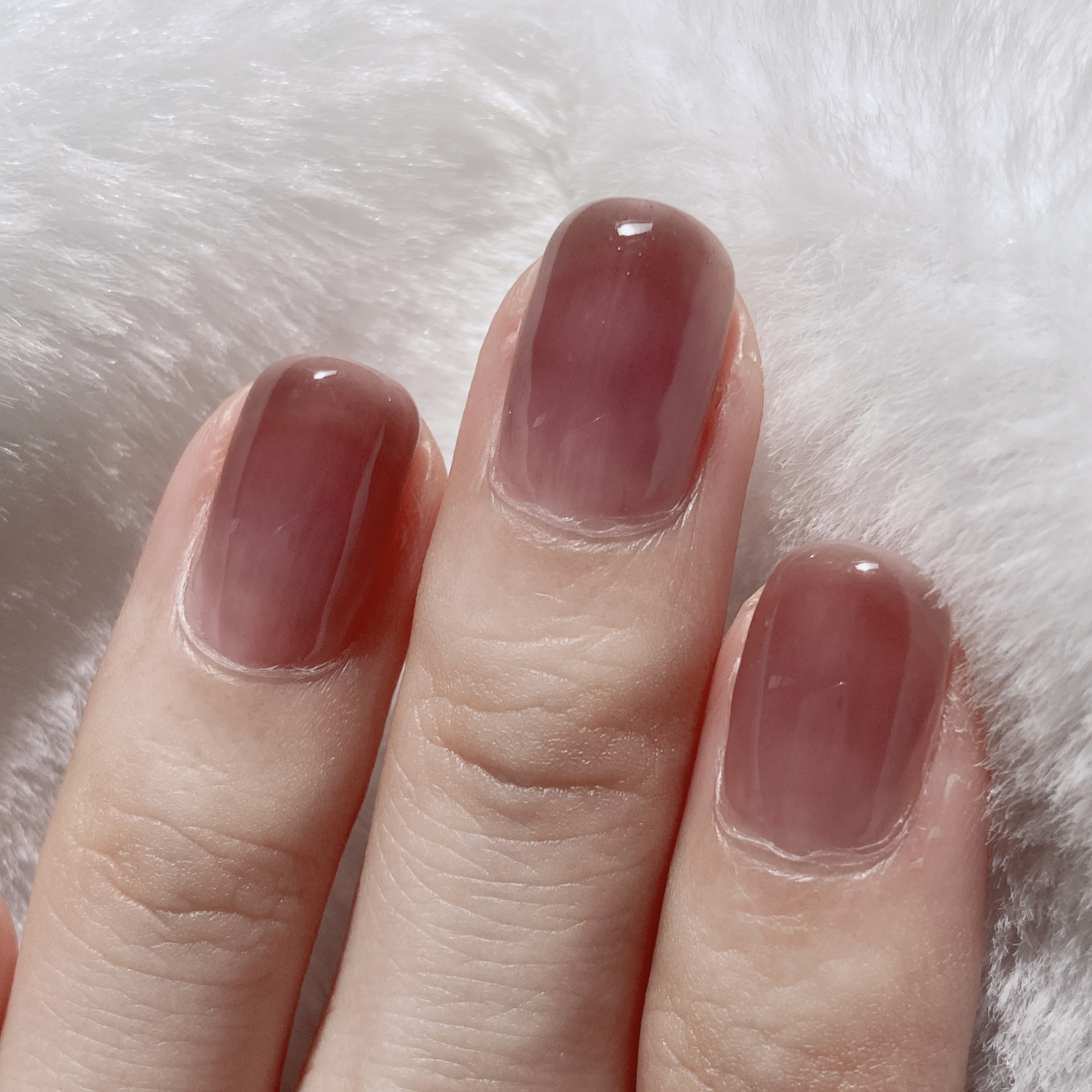 ローズブラウンだけこの中だとすこし透明感が低い色 落ち着いたカラーで使いやすいです 他2つはクリア度が高い色ですベースカラーが透明のままだと 自爪の色が透けてもっとピンクぽさが強く出ます ベース:セリア ピールオフベース トップ:ネイルタウン irogel グロッシートップ (ノンワイプトップ)