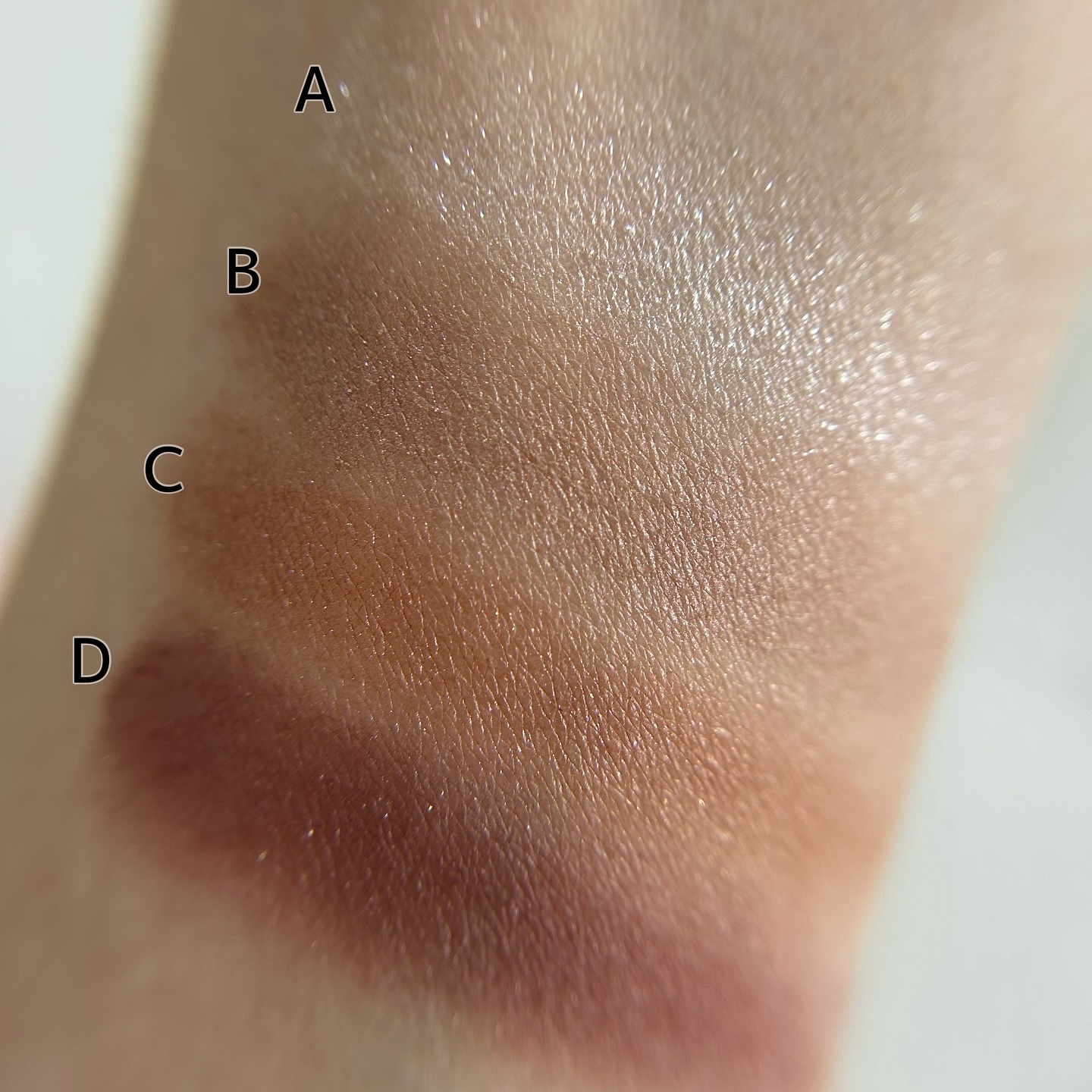 まずですね、ブルベよりかと思いきや、真ん中がピンク系ブラウンなんですよ! 真ん中の色が中和役になりますね! そして左上のグレイッシュカラー…既視感あるなーと思ったら大好きなモノクルールのベージュミッツァ! スウォッチで比べてみたらサンクの方がグレイッシュでしたね! 締め色もしっかりしてるしトータル的にバランスのいいパレット そしてやはり粉質が好きですね! ベースなしで使っても色もちも発色も抜群すぎてDiorさん流石ですってなりました👍 どちらかというとサマーよりのカラーの方が透明感がでます^ ^ ニュートラルな肌でサマー要素やブルベよりの肌の方はとってもハマるブラウンシャドウだと思います🥰 一つ前に投稿したルミナイザーと合わせても可愛くてお気に入りです♪