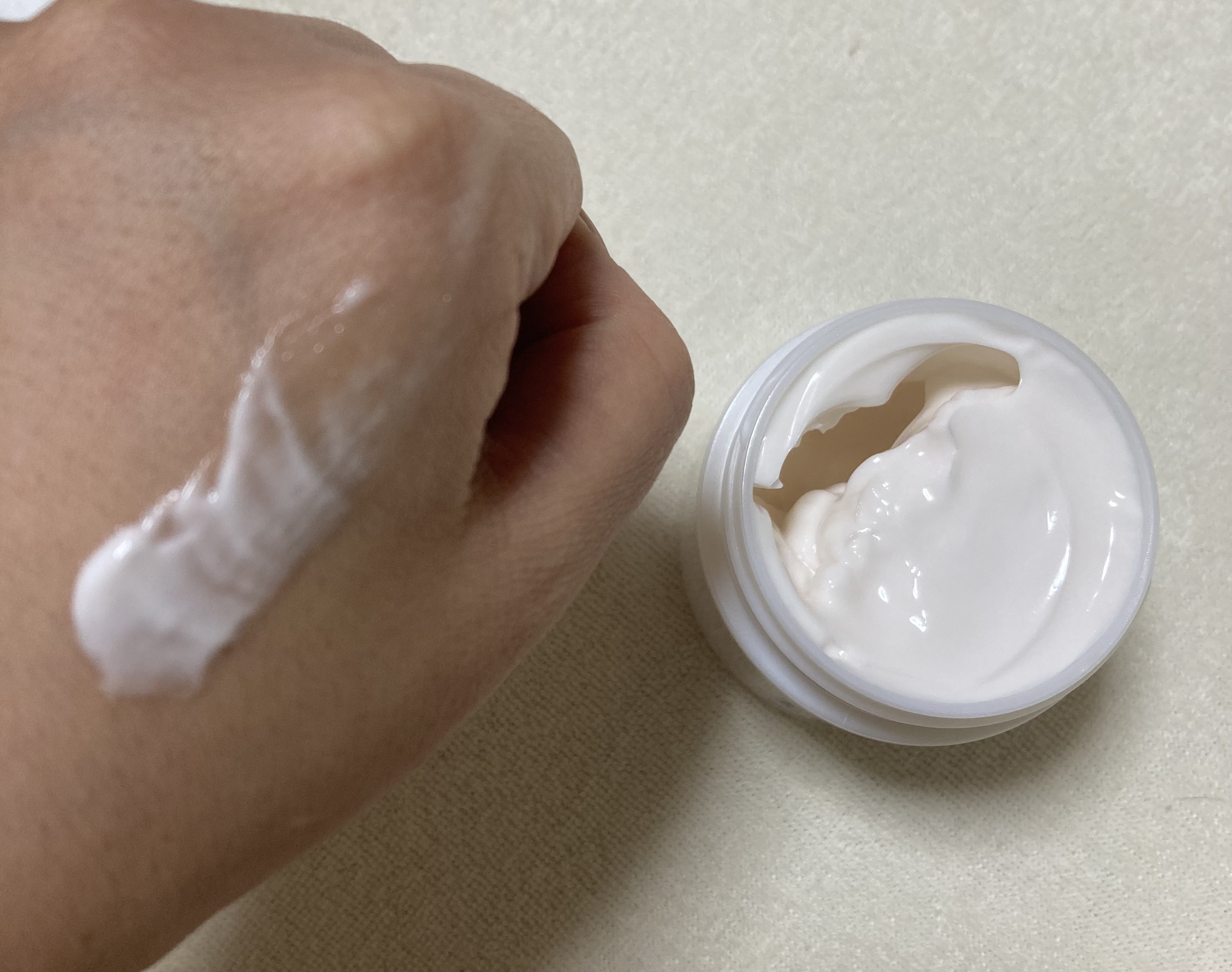 やや固めの白いテクスチャーで無香料です。肌にのせるとバームが溶けてメイクとなじみます。なめらかな感触でくるくるマッサージしながらクレンジングすると指先と肌の温もりで気持ち良かったです。スムーズに滑るので頬や顎下などのザラつきを指で感じる部分は...