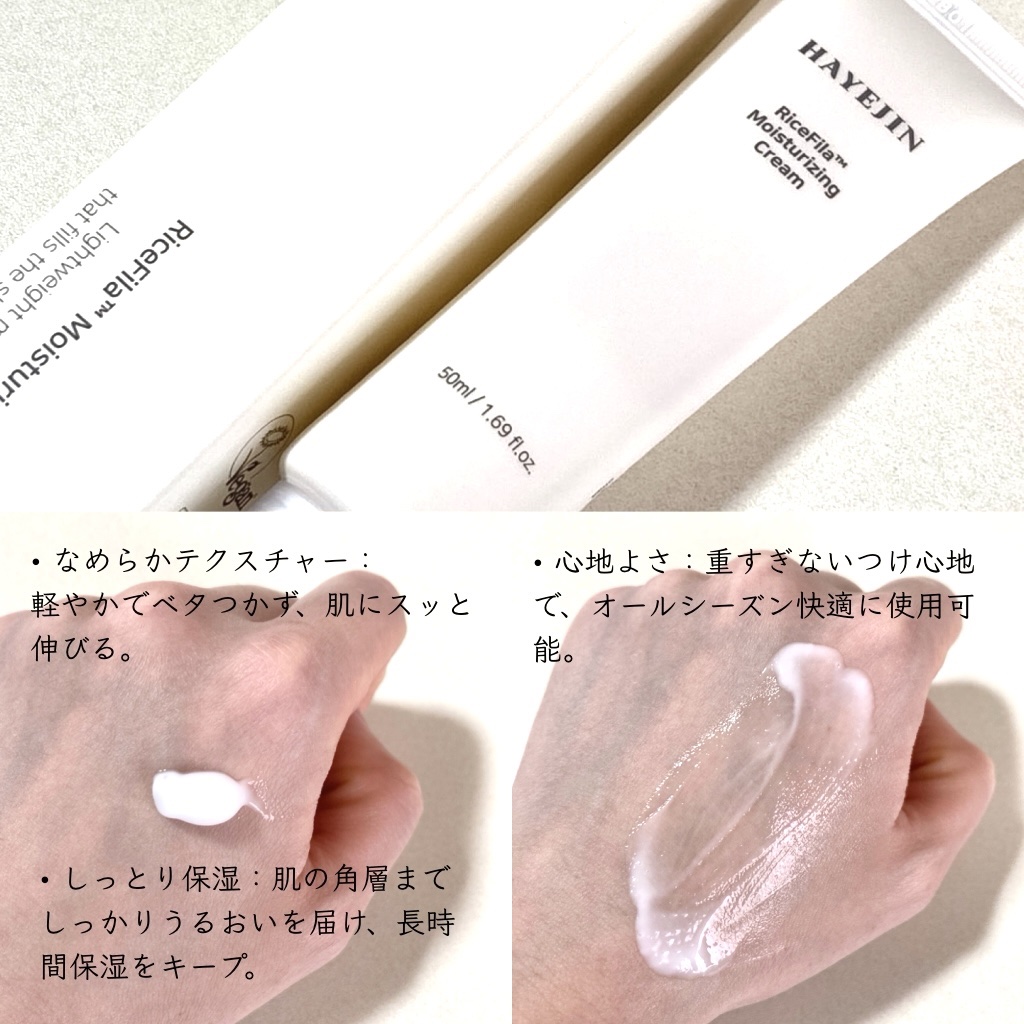 HAYEJIN【ライスフィラー保湿クリーム】軽いつけ心地なのにしっかり水分を与えてくれる保湿クリーム💕しっとり潤うのにベタつかない😍乾燥肌さんには少し物足りないかも…🤔💭そんな時は💡よりしっかりと保湿してくれる『ライスフィラーダブル保湿クリー...