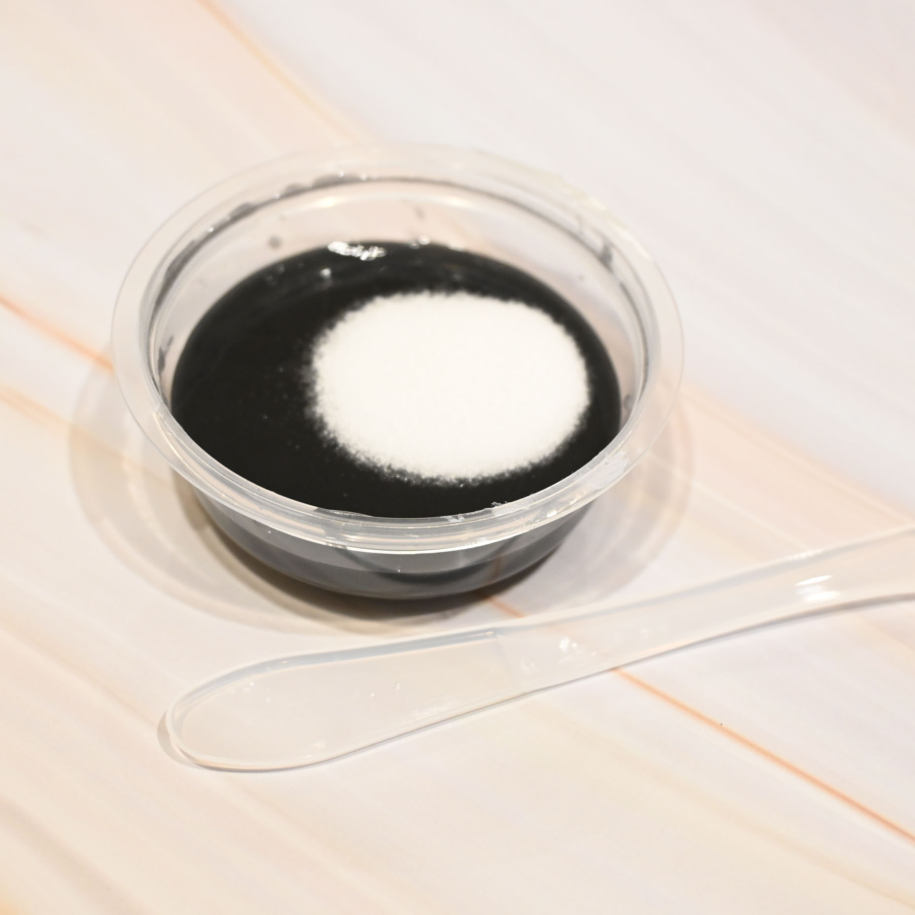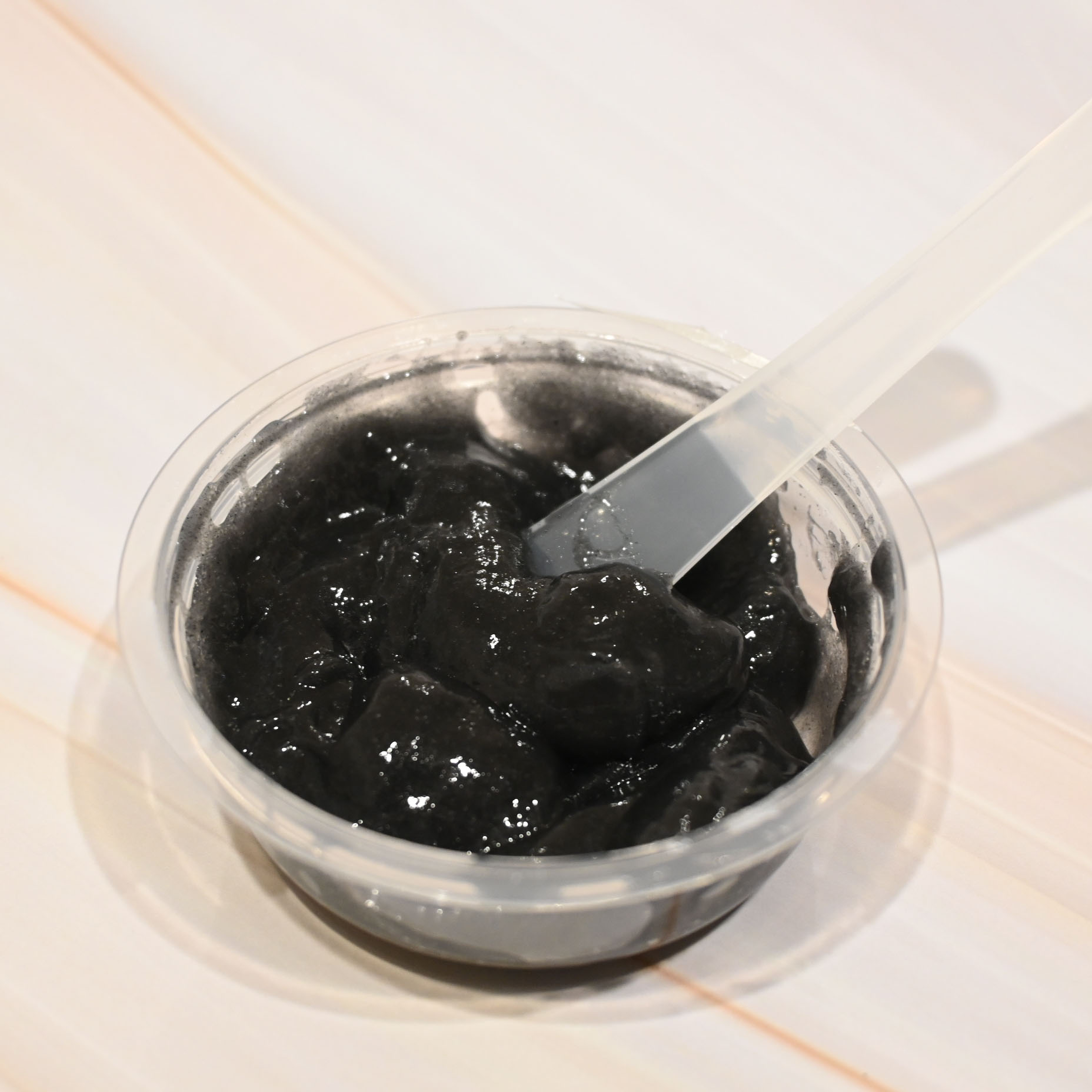 ダークグレーのジェルと白いパウダーを混ぜると、スライムのようにぷるっとしたテクスチャに変化✨この混ぜる工程から楽しい!香りはほんのりアールグレイティーの爽やかさ🍃強すぎず優しい香りなのでスキンケア時間がちょっと癒しの時間に。説明文には肌にのせ...