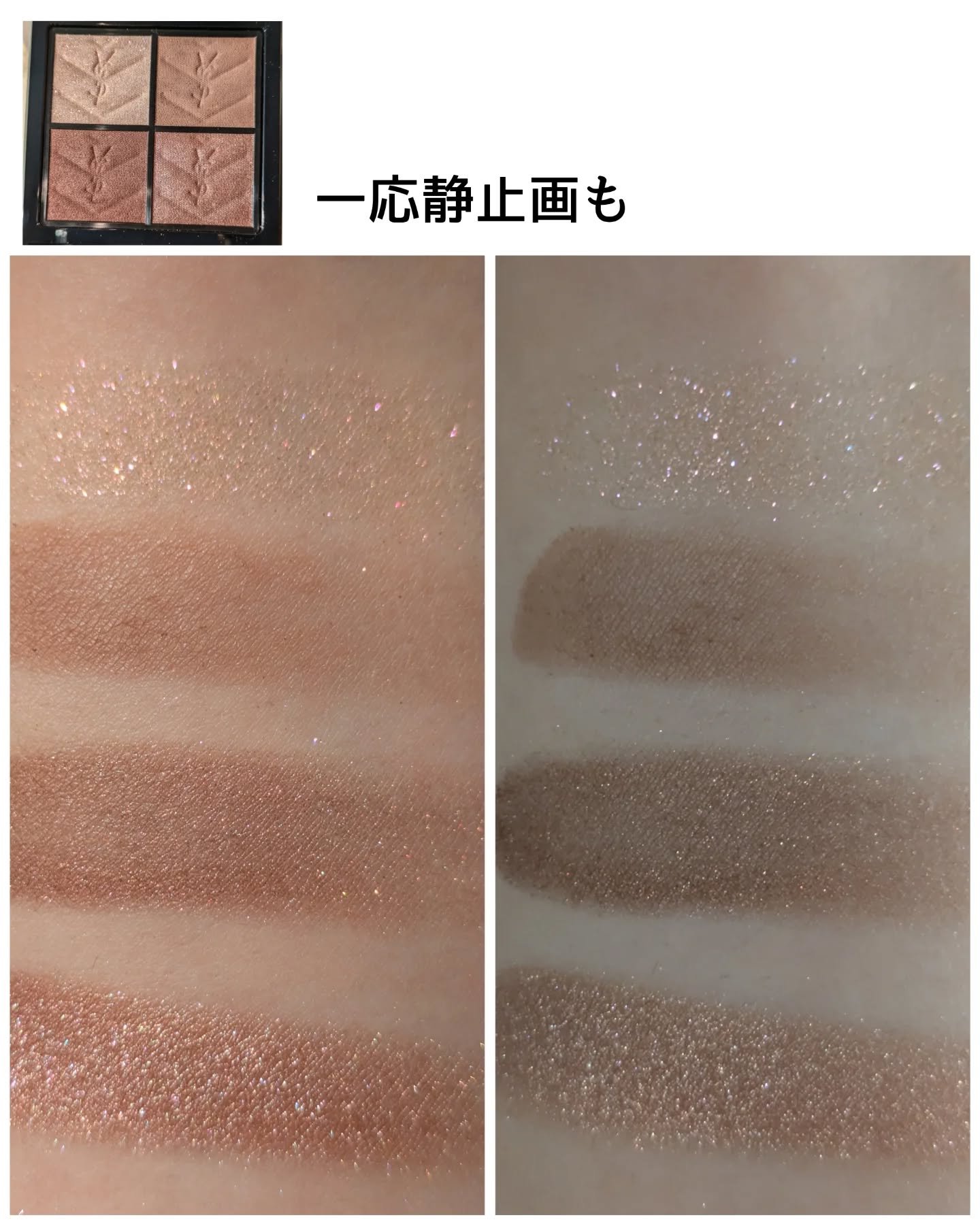 私の好みっぽくないと思うんですが、正直黄みは強いわくすみカラーがメインのパレットだわで買うべきじゃないんだけど、あまりにオシャレで挑戦してみたくて。 新作プライマー。家にアイカラーレーションがたくさんある人間としては買わねばと。買ってみたら発色が劇的によくなるというよりは、全体的に明るく、かつピンク寄りに発色するようになりました。 淡いオレンジ。ただ偏光のザクザクラメが入っていて、角度によってはピンクにも見える…これは可愛い!