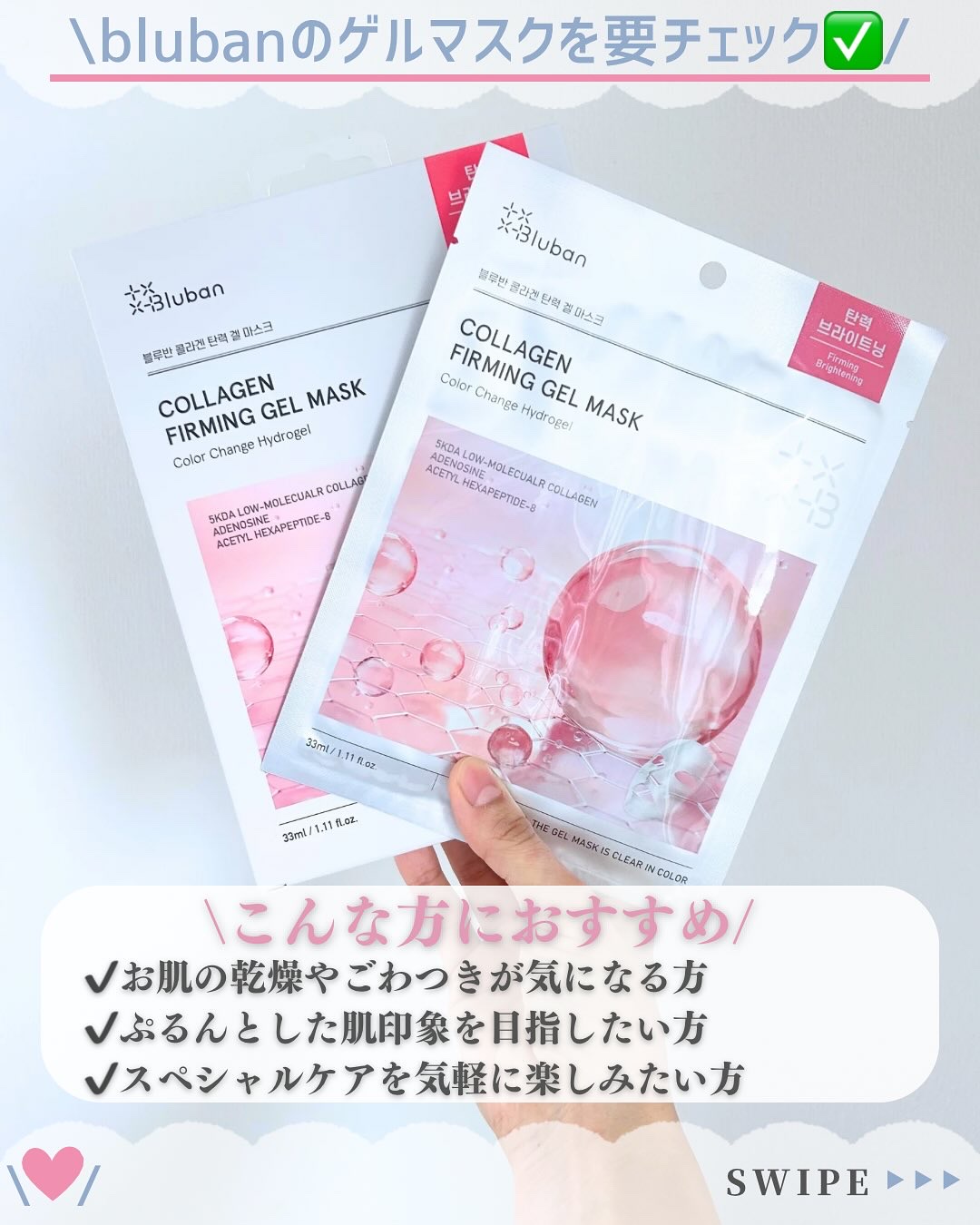 。・:+°。#モニター・:+°。@blubanlab@blubanlab.jpblubanサマに《COLLAGENFIRMINGGELMASK》ご提供頂きました🥰こちらのゲルマスクの特徴は🩷カラー変化ハイドロゲルにより、ゲルがフィルム化&収縮...