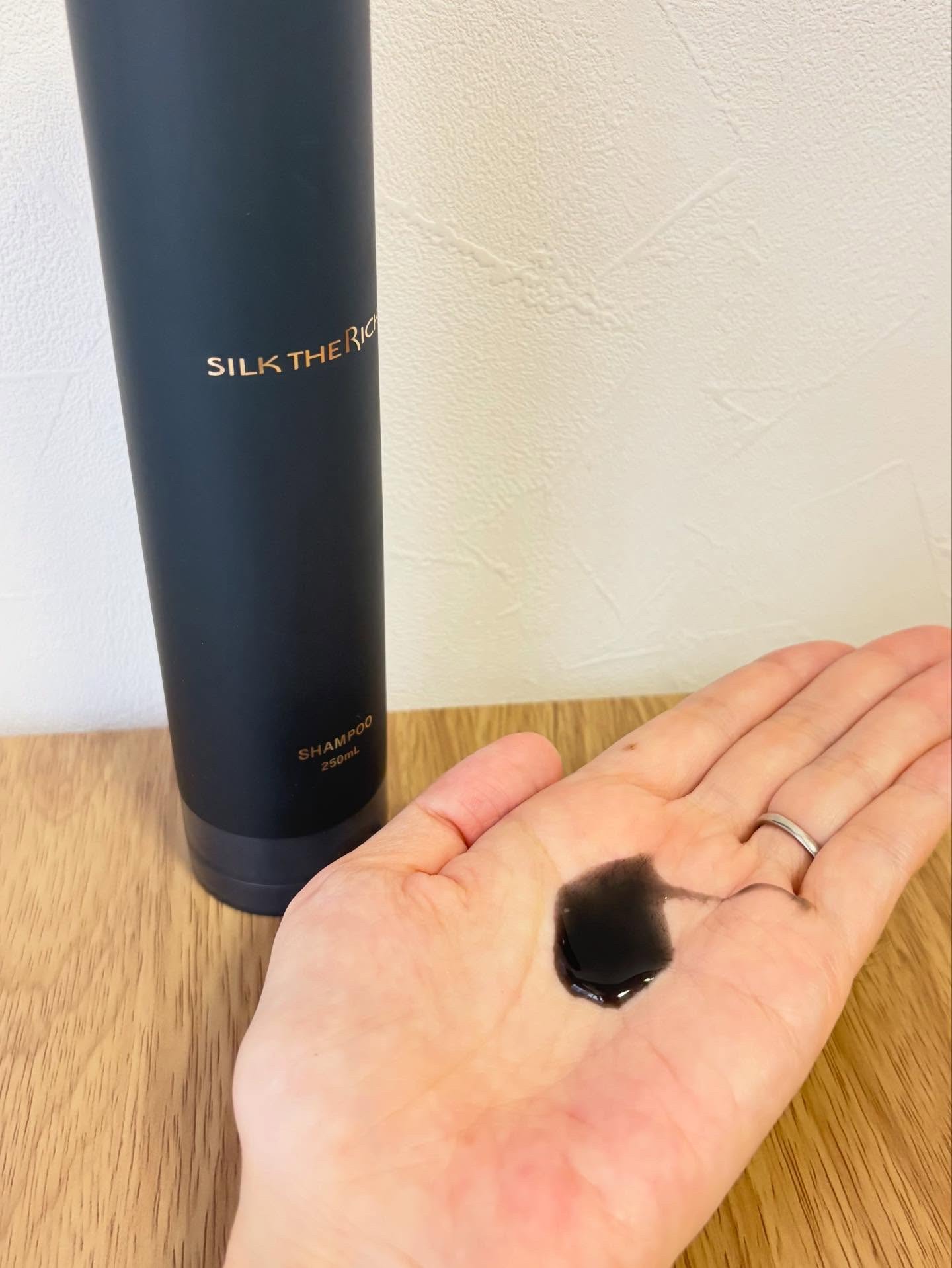 SILKTHERICHシルクザリッチ スカルプ&リペア《ムードナイトムスクの香り》シャンプートリートメントとの紹介♡まず黒いとろみのあるシャンプー🧴泡立てるとふわっと軽い白い泡に変わり、頭皮全体を包み込むように洗えました!泡立てやすかったです...