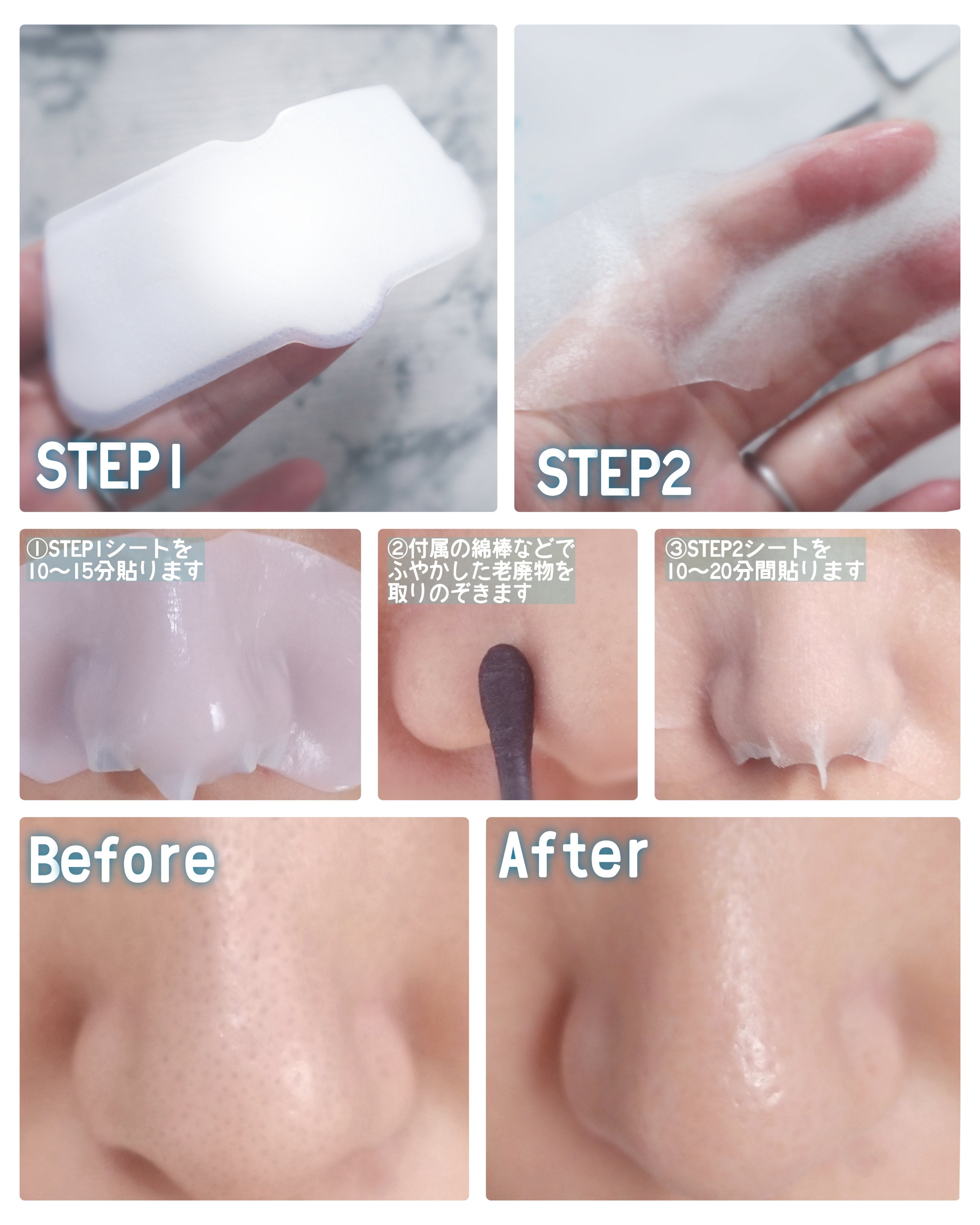 - 1-2STEPで毛穴の汚れを取り除き-肌引き締めて終わり! STEP 1こだわりの独自成分とシート素材で肌に優しい使い心地で皮脂、黒ずみ汚れを除去 STEP-2で 肌引き締め、肌を整える お鼻の黒ずみ汚れのお悩み、まろやかに一気に除去!