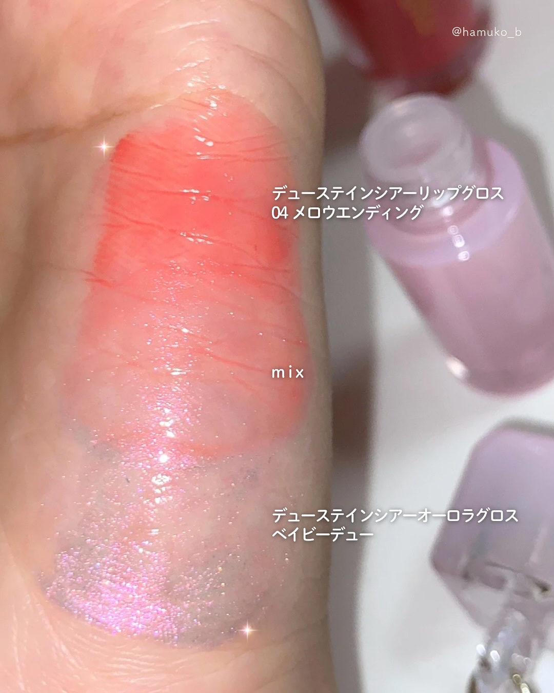 ⸝꙳.˖𝑚𝑖𝑙𝑘𝑡𝑜𝑢𝑐ℎ˖.⸝꙳CosmeLabで出会った𝑚𝑖𝑙𝑘𝑡𝑜𝑢𝑐ℎ🍼ˎˊ˗DEWSTAINSHINEDUOセットをいただきました𓂃⸝⸝꙳#04メロウエンディングは透けツヤとやわらかい血色感がたまらなく可愛いの🍑ベイビーチューのキー...
