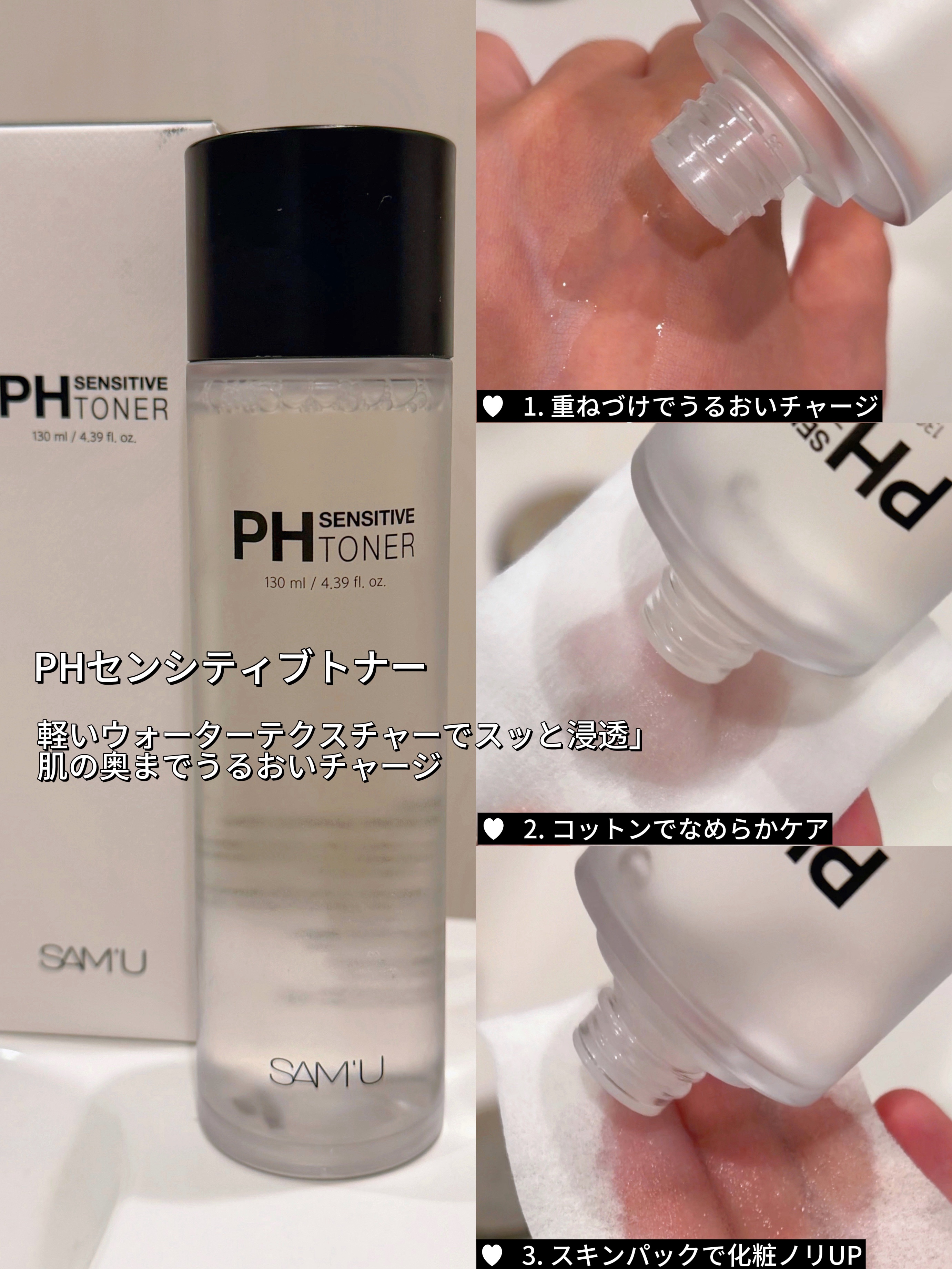 SAM'U【サミュ】PHセンシティブトナー130mLSAM'Uアンバサダー投稿です🗣️トリプルヒアルロン酸でぎっしり満たす💦💦💦水分ブースティングトナー🔳POINT🔳☑︎トリプルヒアルロン酸+セラミド配合乾燥を防いで、しっとり肌のケアをサポー...