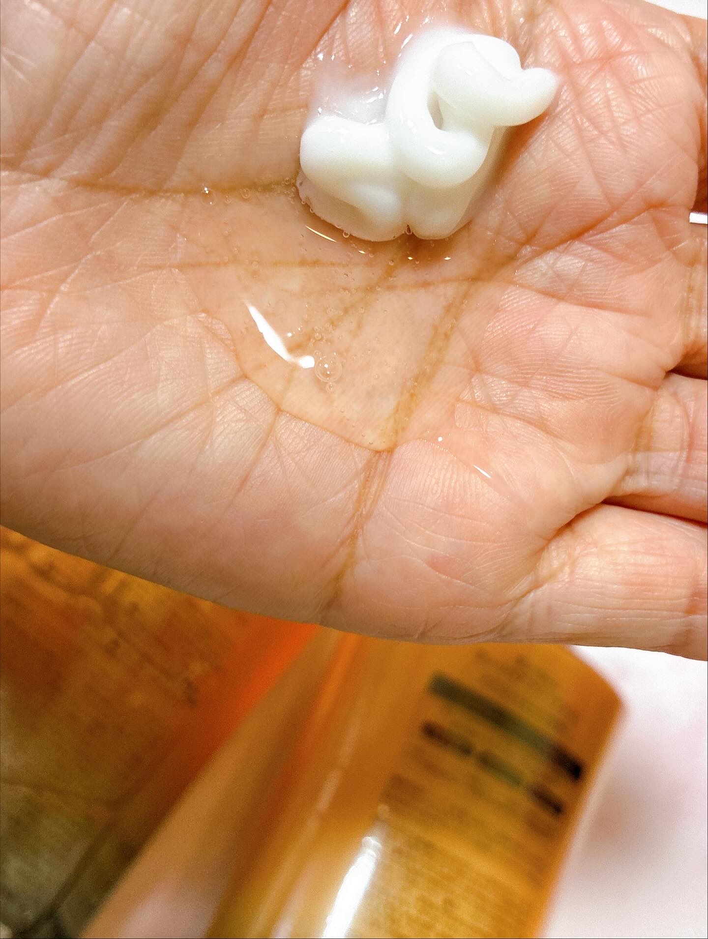 | ジェルのようなみずみずしいテクスチャーのシャンプーで、髪に「塗り広げて」から泡立てて使います。 | 詳細を見る | ||