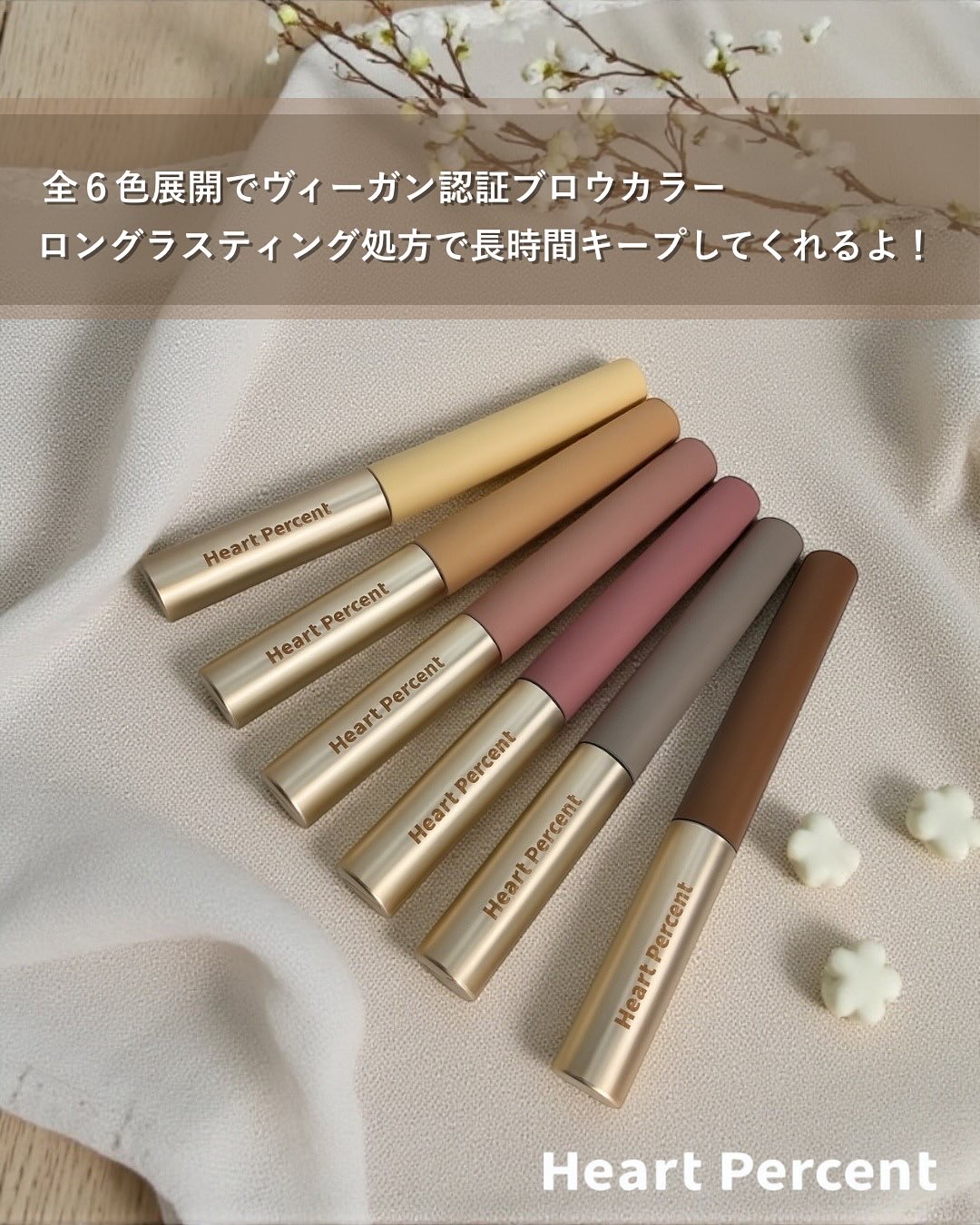 ⸜全色スウォッチ🔖⸝さっとひと塗り、垢抜け眉に!HeartPercentドットオンムードフェイクアップブロウカラー¥1,490(税込)さっとひと塗りでムラなく発色する、ヴィーガン認証の眉マスカラ🪄︎︎フィットする15°の角度がついたスキニーブ...