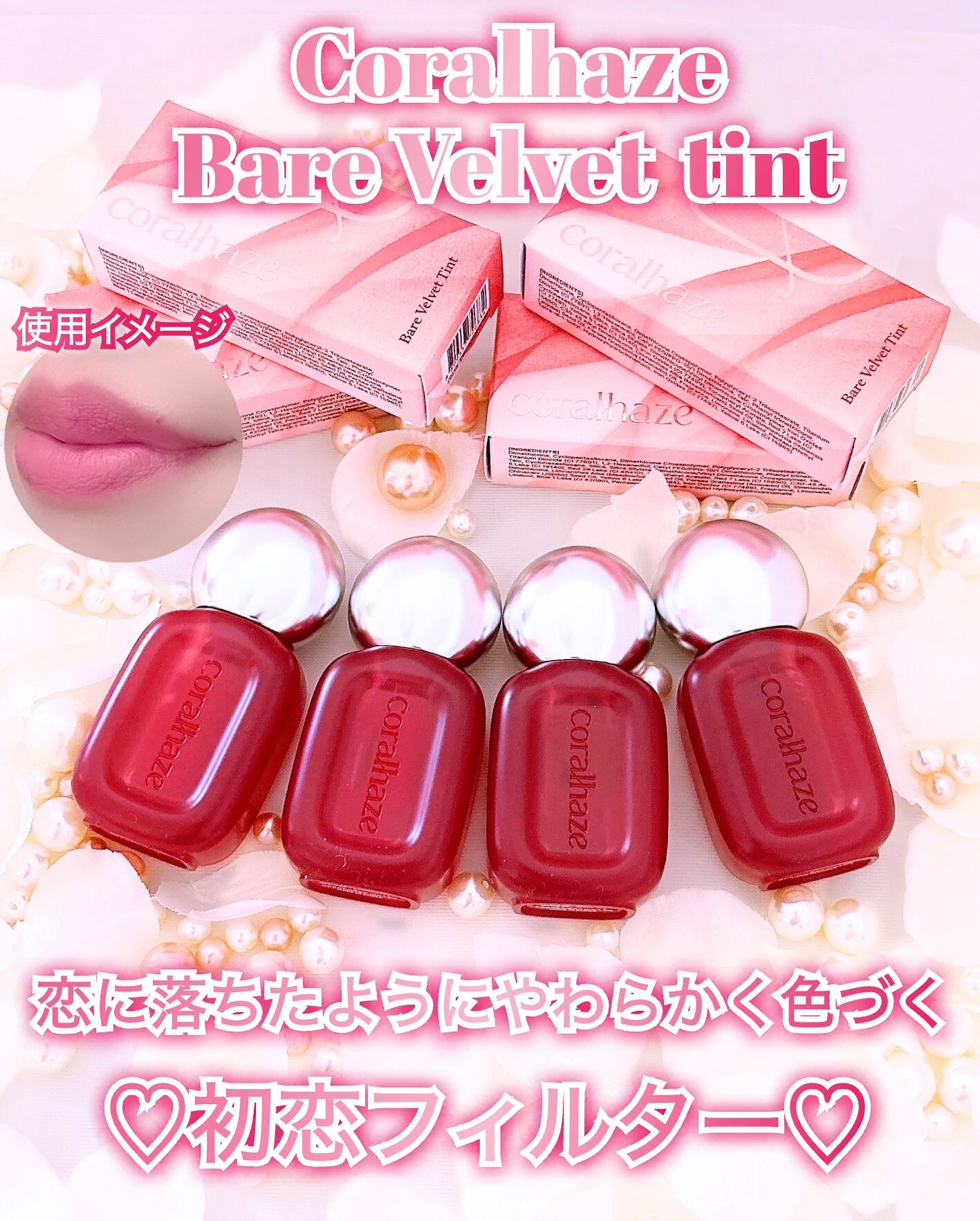 \ふんわり潤うベルベットリップ💋💕/❤︎コーラルヘイズ❤︎新作❣️ベアベルベットティント♡o。..:*♡o。..:*♡o。..:*♡o。..:*♡o。..:*#301MistyPetal#302BareFig#304MauveWhip#305...