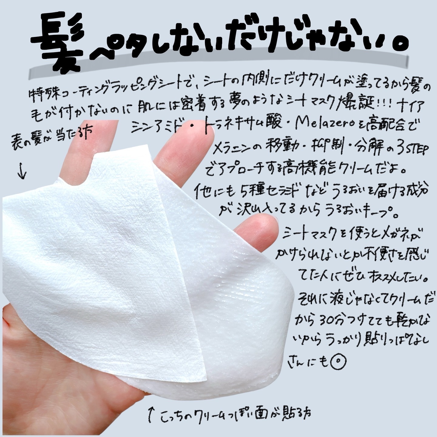 | クリームが満遍なくシートに付いていて、ぴったりと密着し全顔覆い尽くしてしっかりケアできる🤲🏻 | 詳細を見る | |||