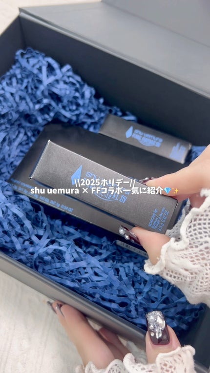 【シュウコフレ青ラメ祭り】...毎年楽しみにしているシュウウエムラのホリデーコレクション今年はファイナルファンタジーXIVコラボ💙.愛くるしい見た目のキャラクター「モーグリ」がパケやアイシャドウにエンボス加工されてるよ。.どのアイテムにも青ラ...